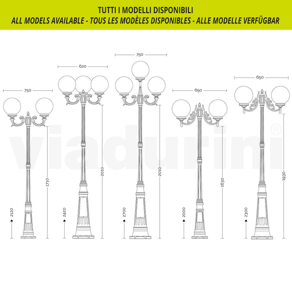 Bring a breath of classic elegance to your outdoor space with this cast aluminum outdoor street lamp. The refined superior quality aluminum construction promises unparalleled resistance to weather conditions, ensuring you have a long-lasting and timeless lighting solution. This street lamp diffuses a balanced and homogeneous light, perfect for driveways, gardens or patios. The finish blends harmoniously with the natural landscape, adding a touch of nobility and tradition to the context in which it is placed. This lamppost is not simply a functional object, but a true symbol of style and refinement , capable of transforming any exterior into an enchanted and welcoming place.