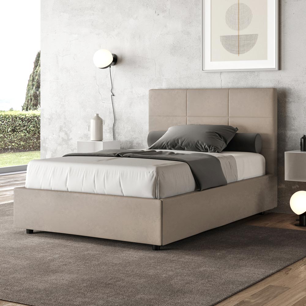 Queen-size bed 120x200 cm padded and covered in microfibre, Made in Italy