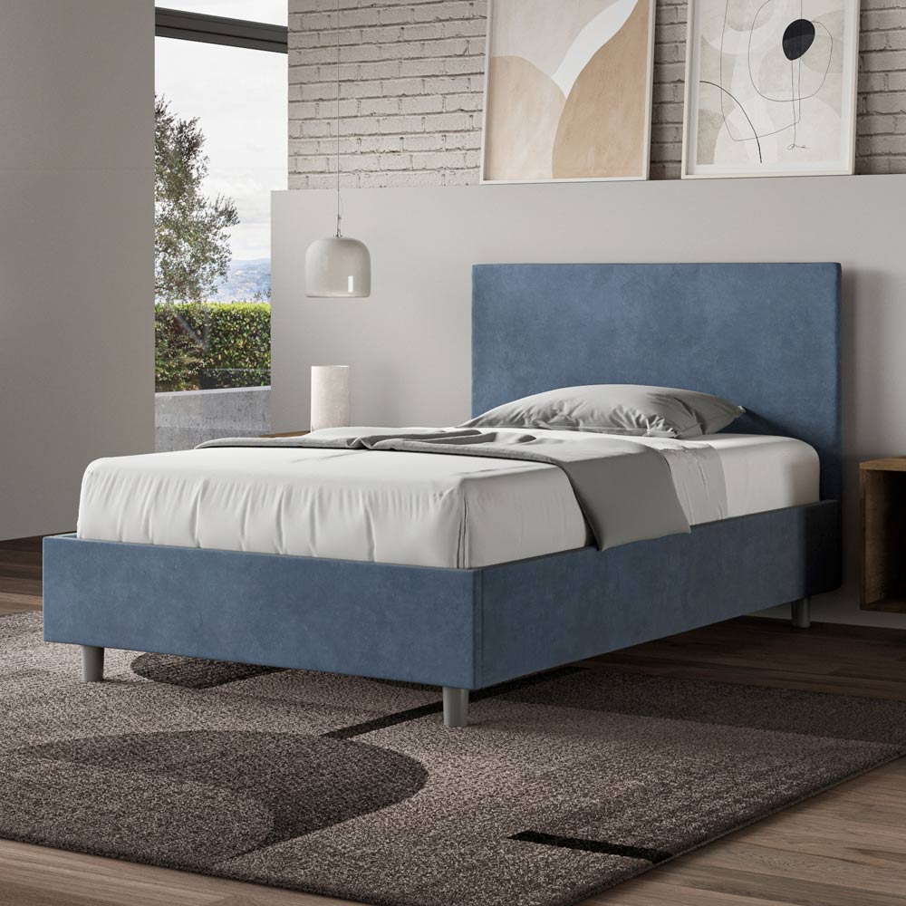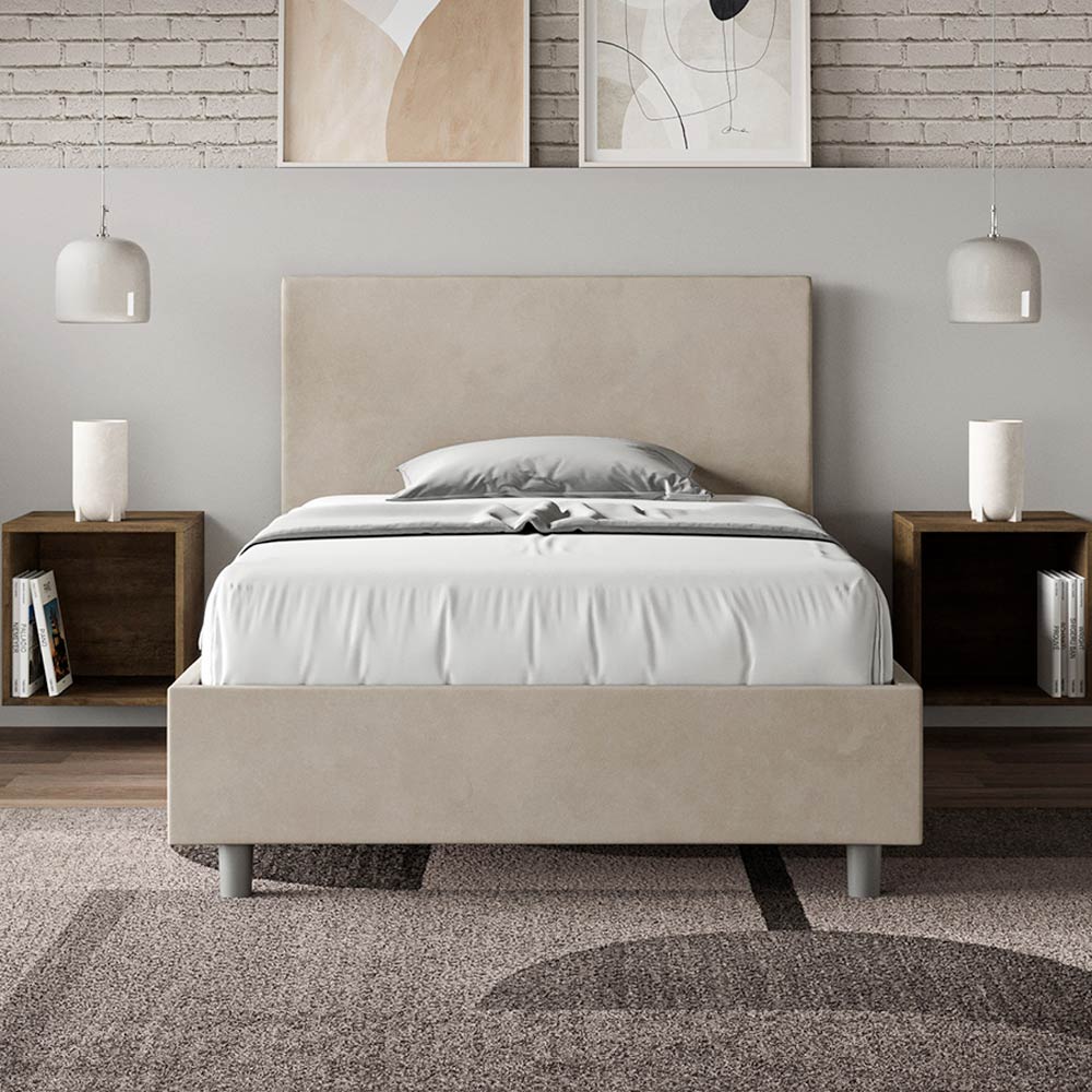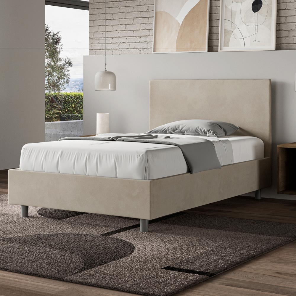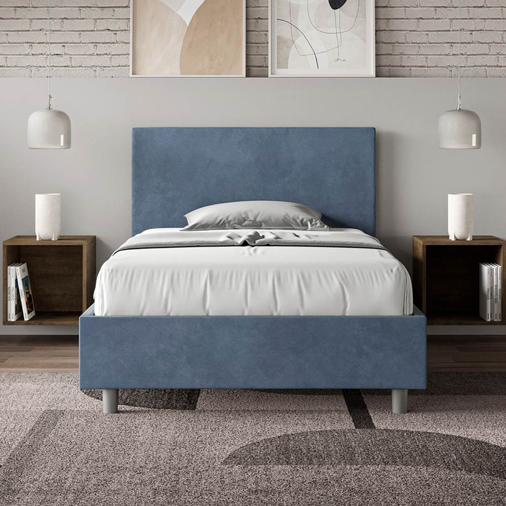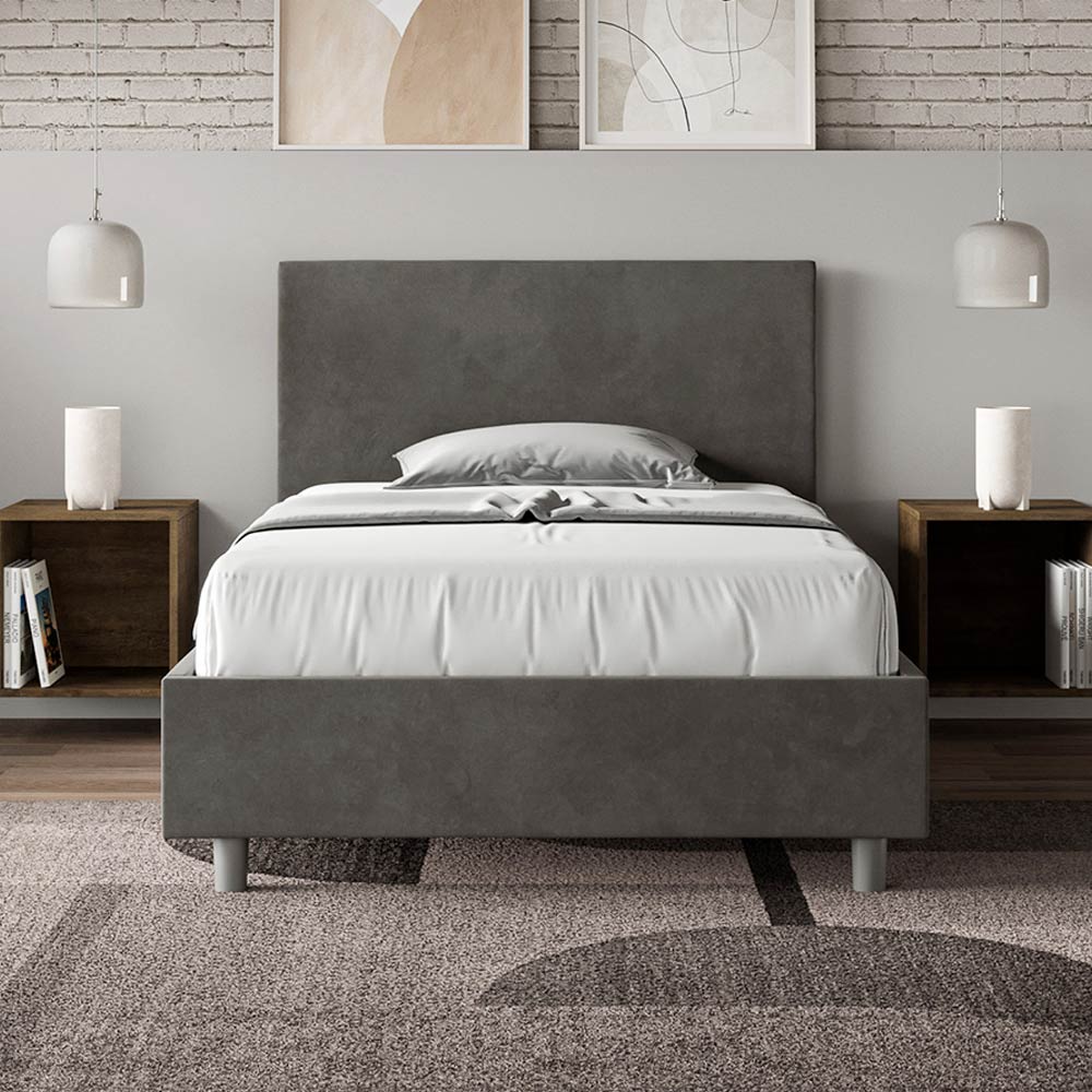 Queen-size bed 120x200 cm padded and covered in microfibre, Made in Italy