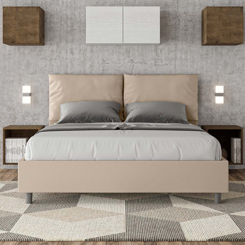 160x200 cm padded double bed covered in faux leather, Made in Italy