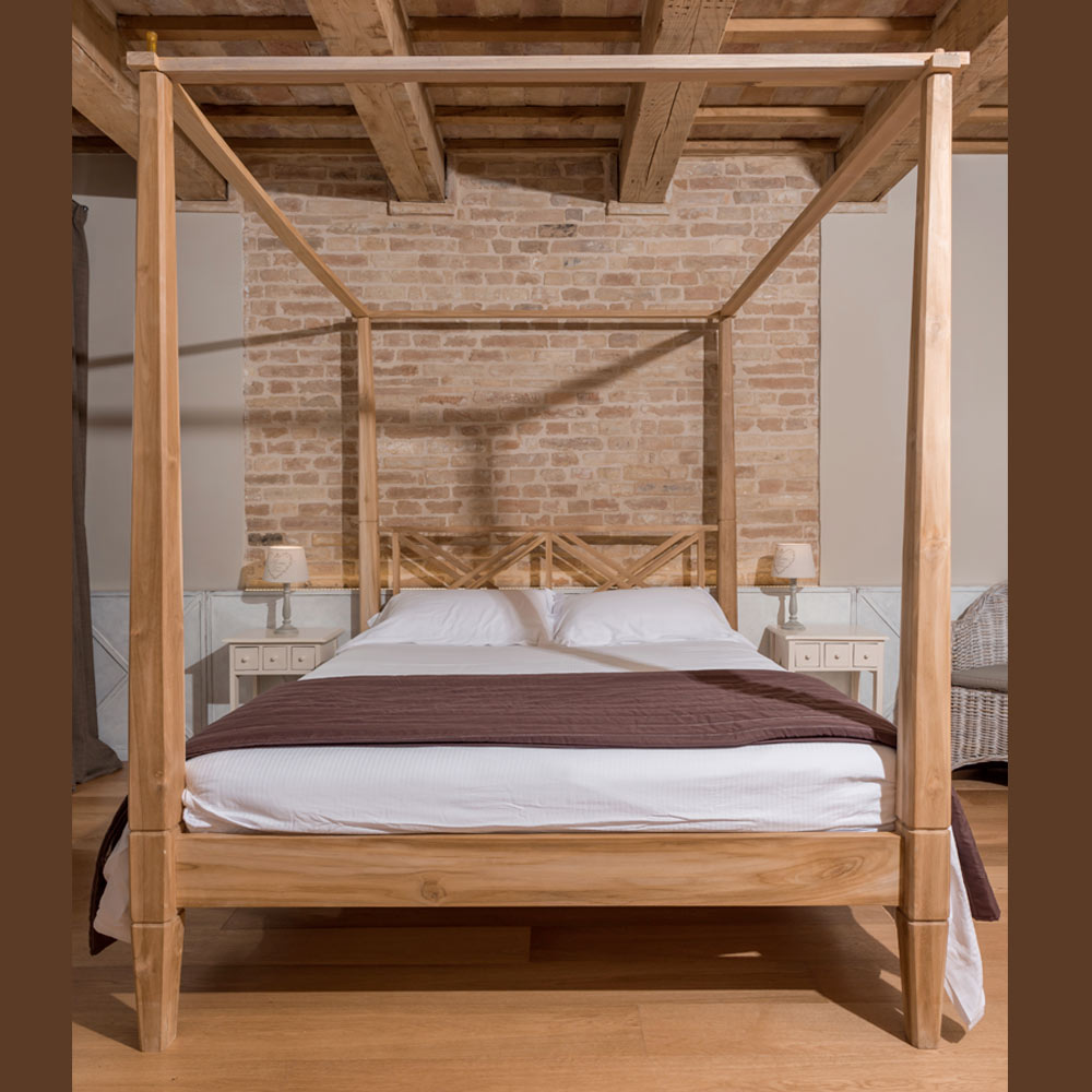 180x200 Double Bed with Canopy in Solid Teak Wood - Tempera