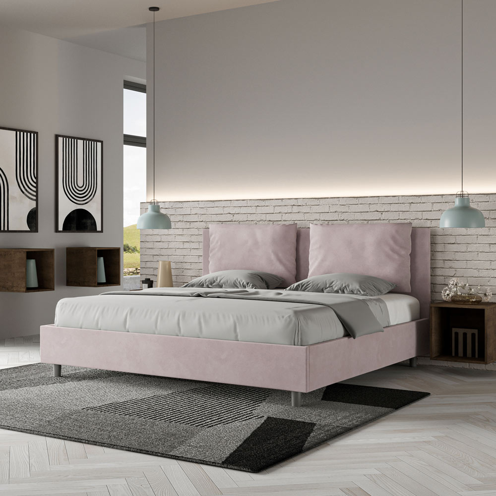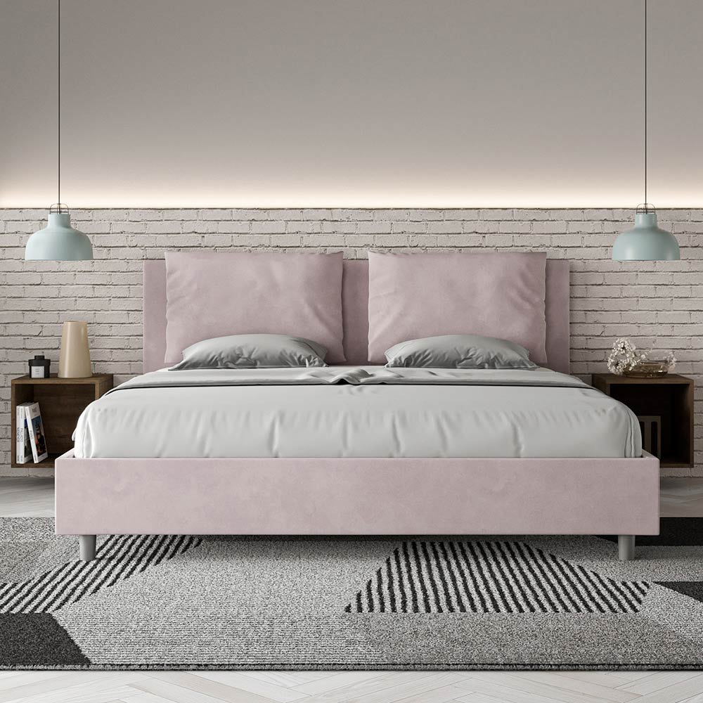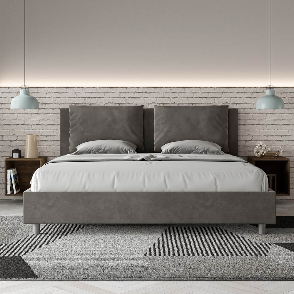 King size bed 190x200 cm padded made of melamine panels and covered in microfibre , entirely Made in Italy.