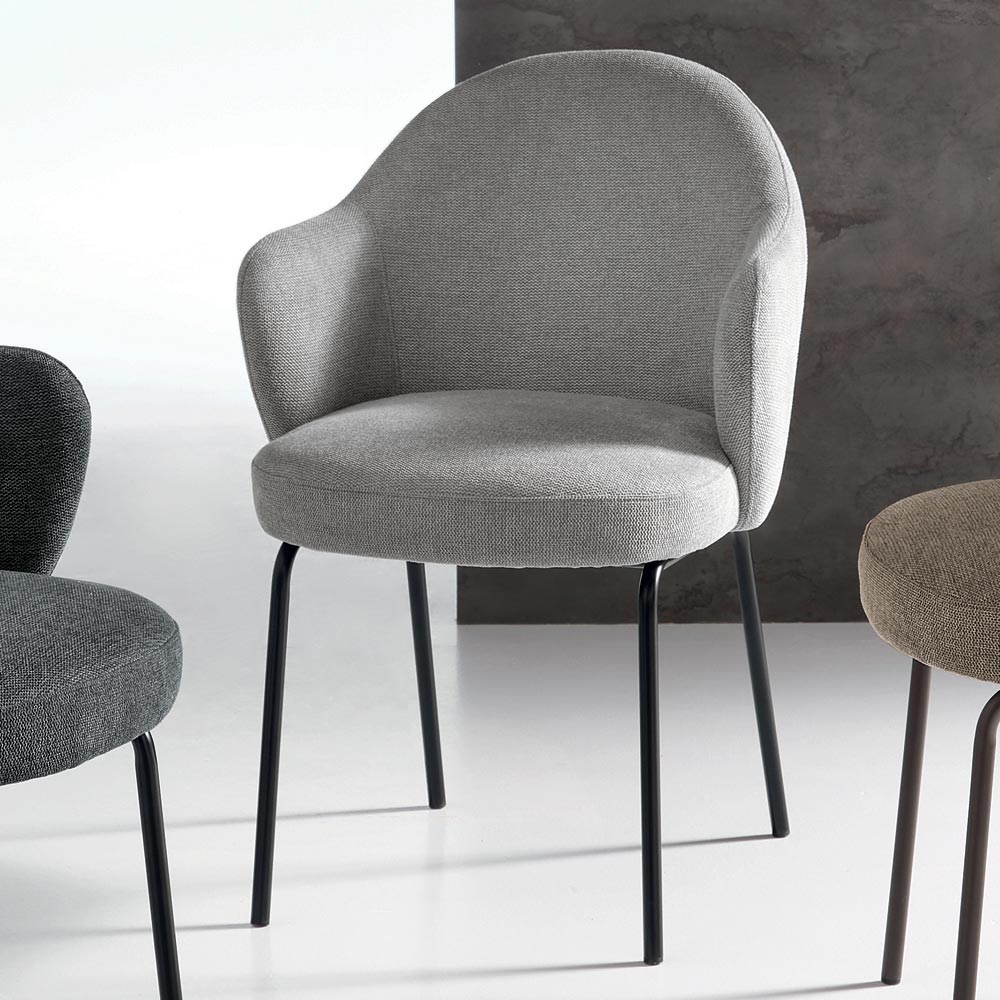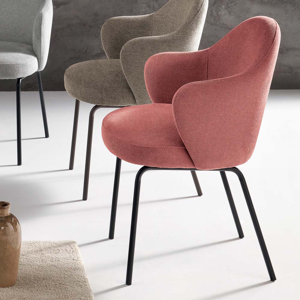 The chair features a curved, continuous backrest that gently opens into two rounded armrests , offering a welcoming feeling both visually and functionally. The sprung seat ensures high comfort even during prolonged use.