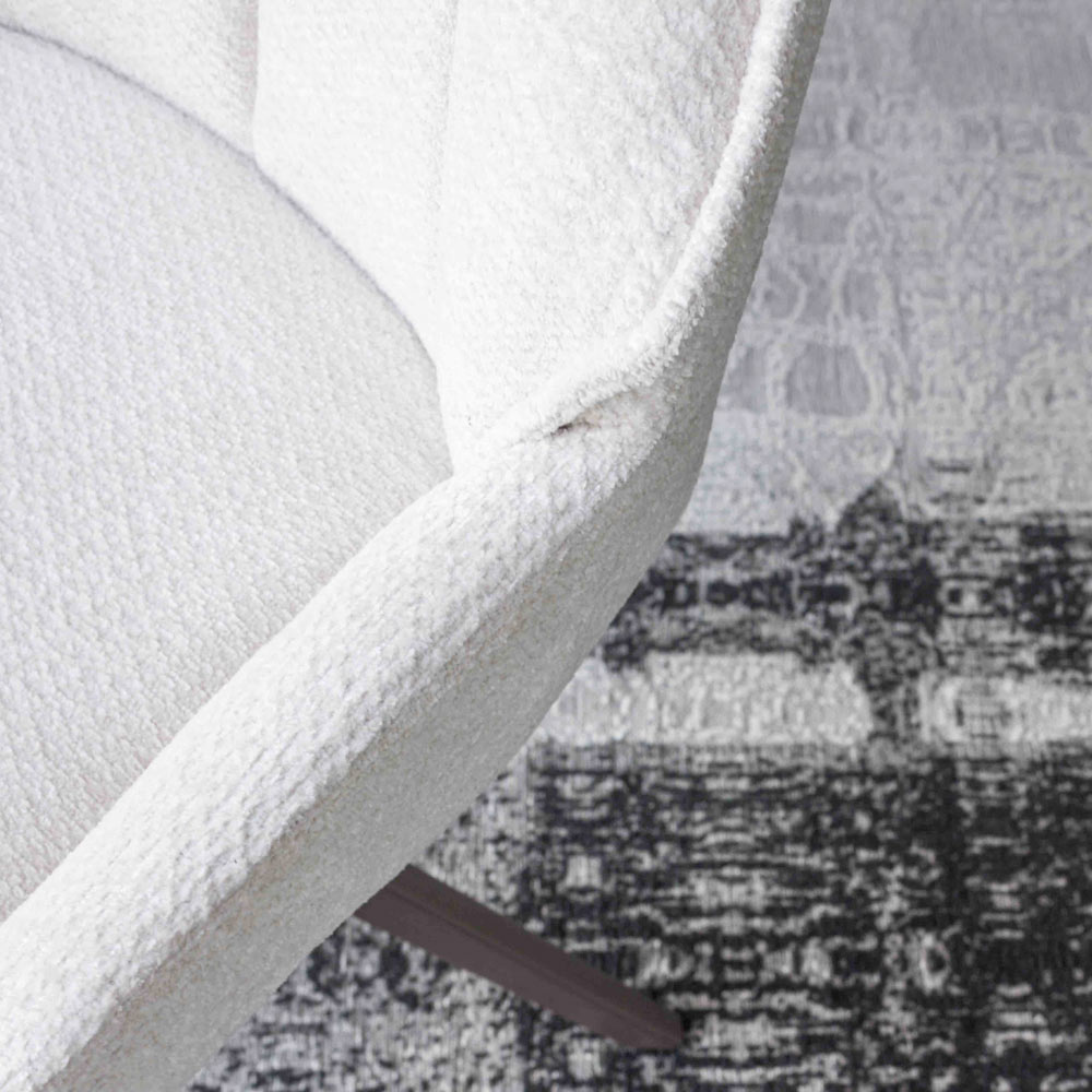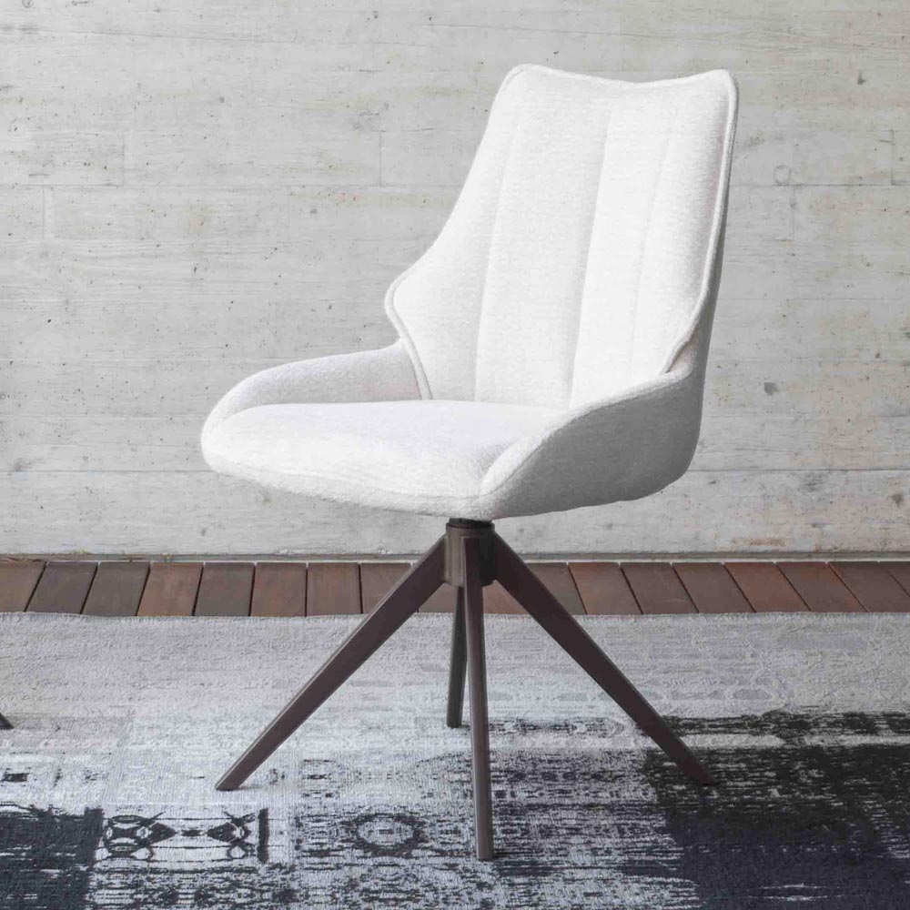 This chair represents a perfect combination of contemporary elegance and enveloping comfort . The soft, sinuous lines of the backrest blend with the padded seat to create a refined, welcoming shape that can enhance any space. The bright, pleasant-to-the-touch fabric upholstery lends an aura of lightness and sophistication , while the four-legged, pyramid-shaped painted metal base ensures stability and a touch of modern design .