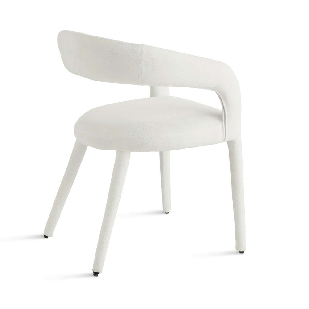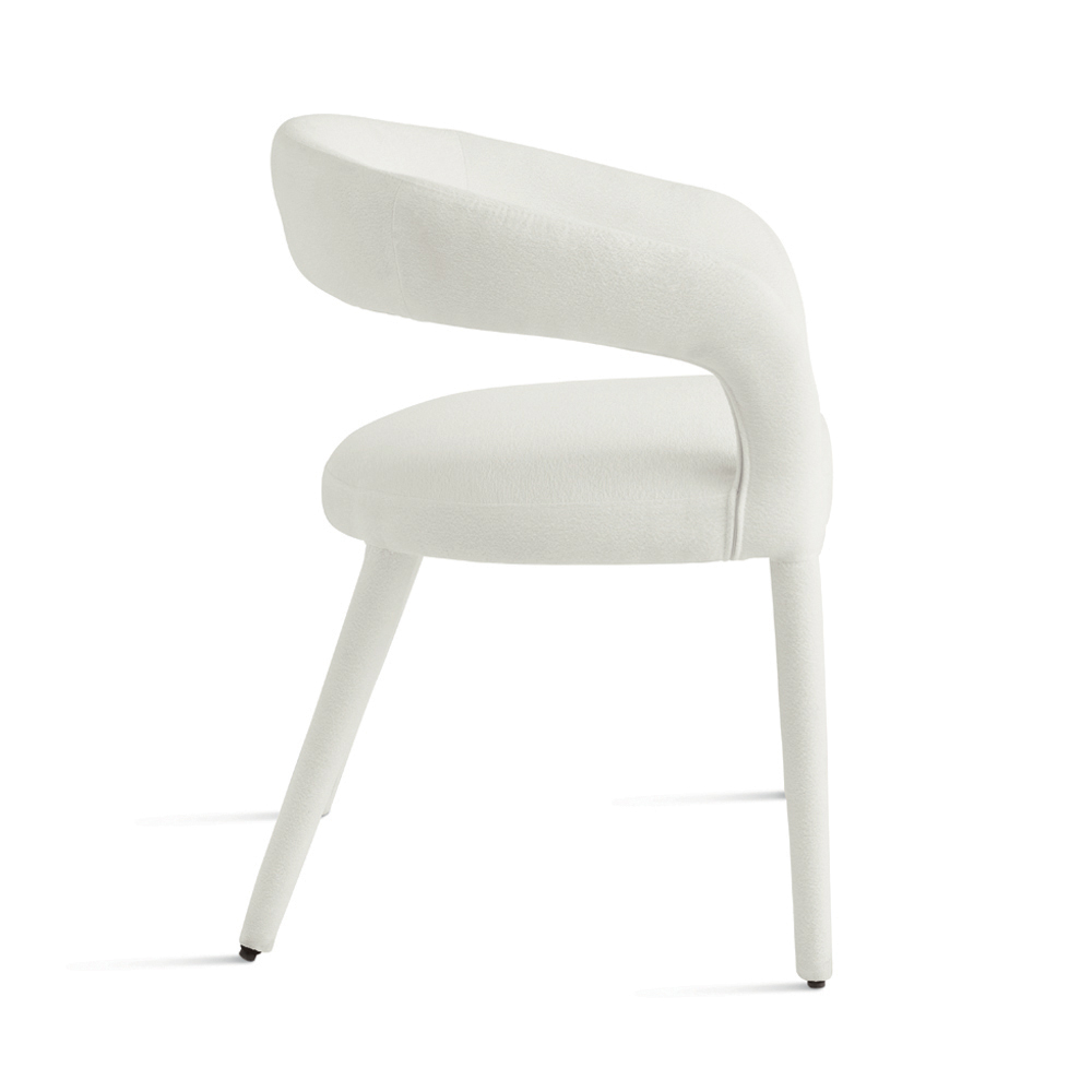 An elegant set of two upholstered chairs with a simple, contemporary design, ideal for stylishly furnishing your dining room , living room , or social space. The chair features a bouclé fabric upholstery that completely covers the seat and frame, creating a harmonious and refined silhouette.