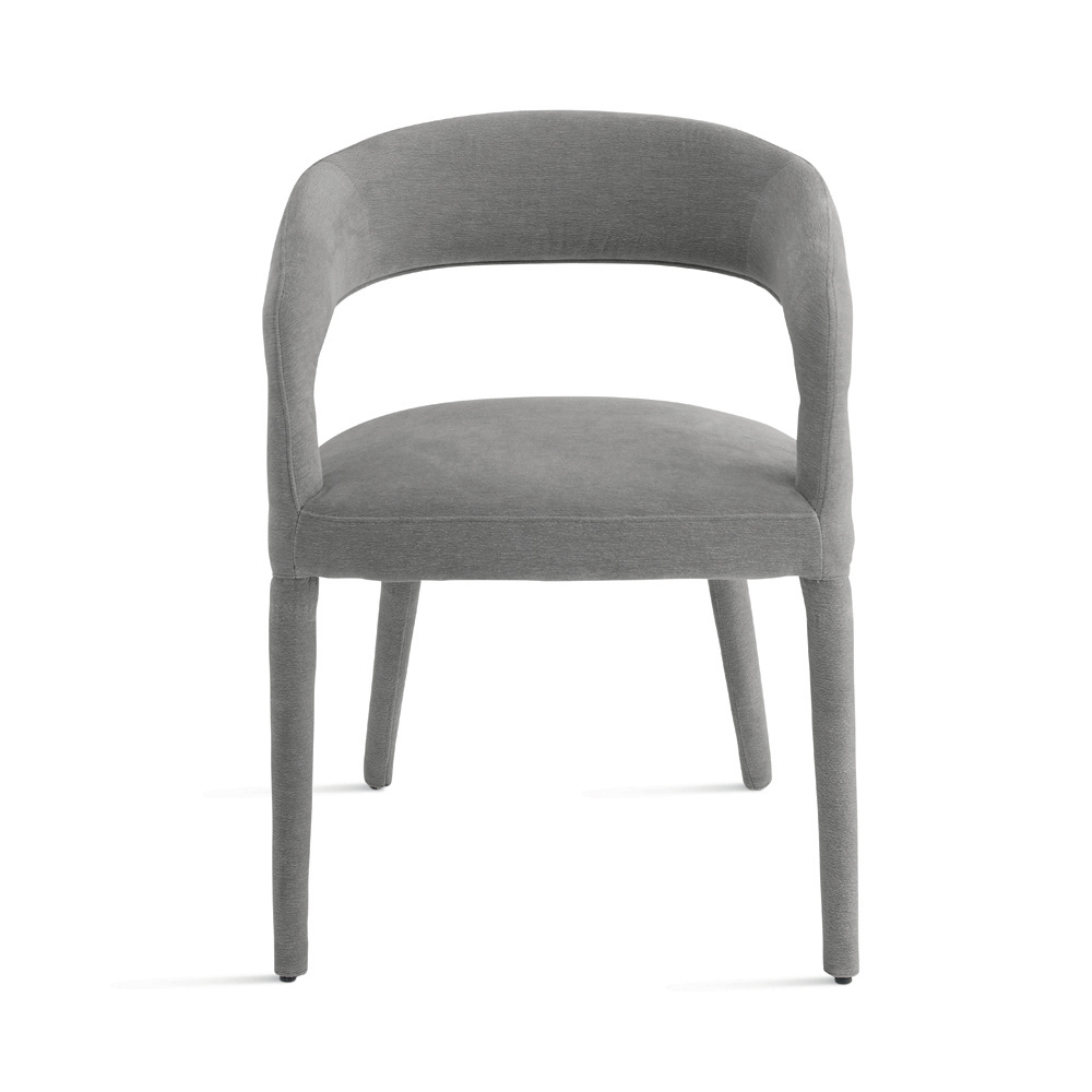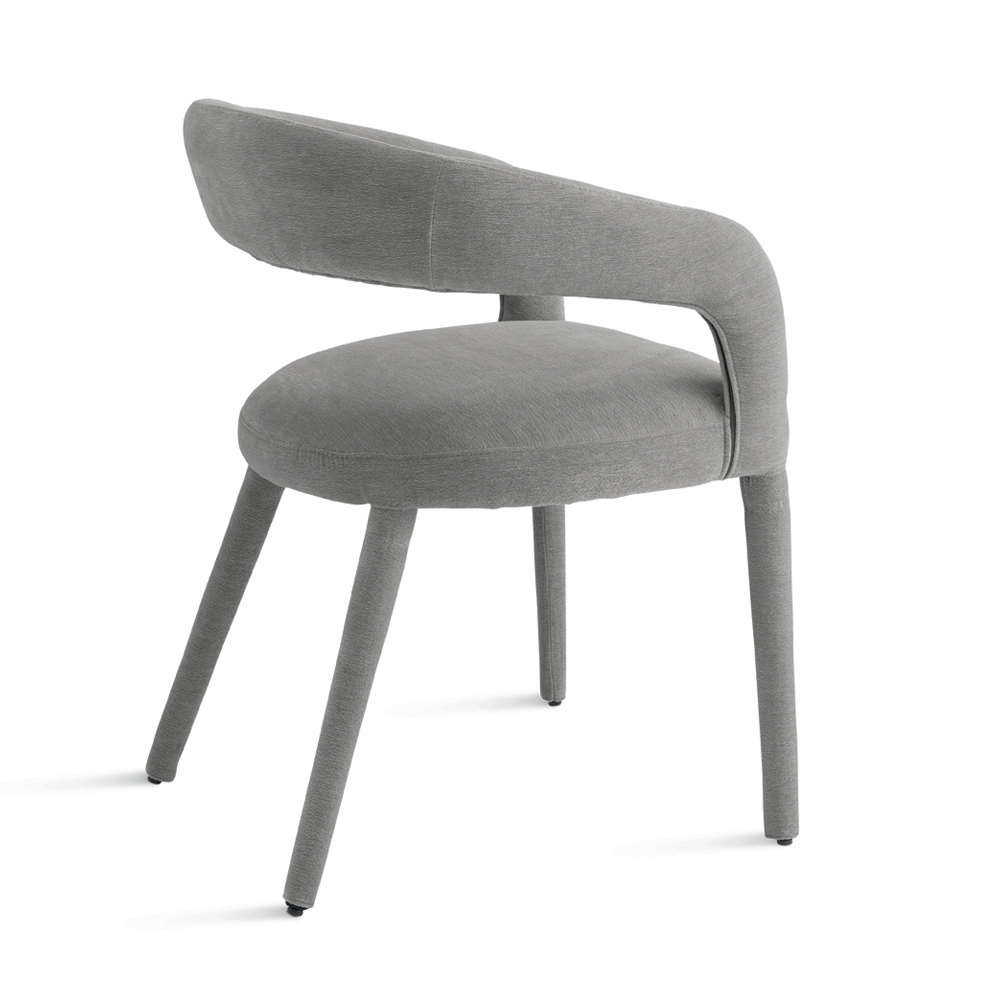 The clean lines and balanced proportions make this chair discreet yet elegant, easily integrating into a variety of furnishing contexts. The seamless upholstery lends aesthetic coherence to the design, enhancing the chair's modern, minimalist look.
