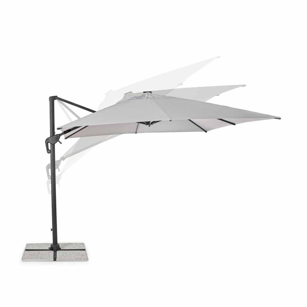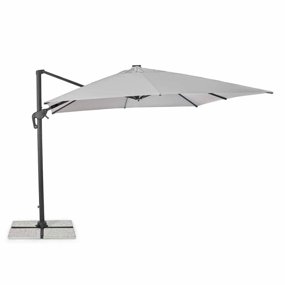 3x3 outdoor umbrella in anthracite aluminum with gray polyester fabric.