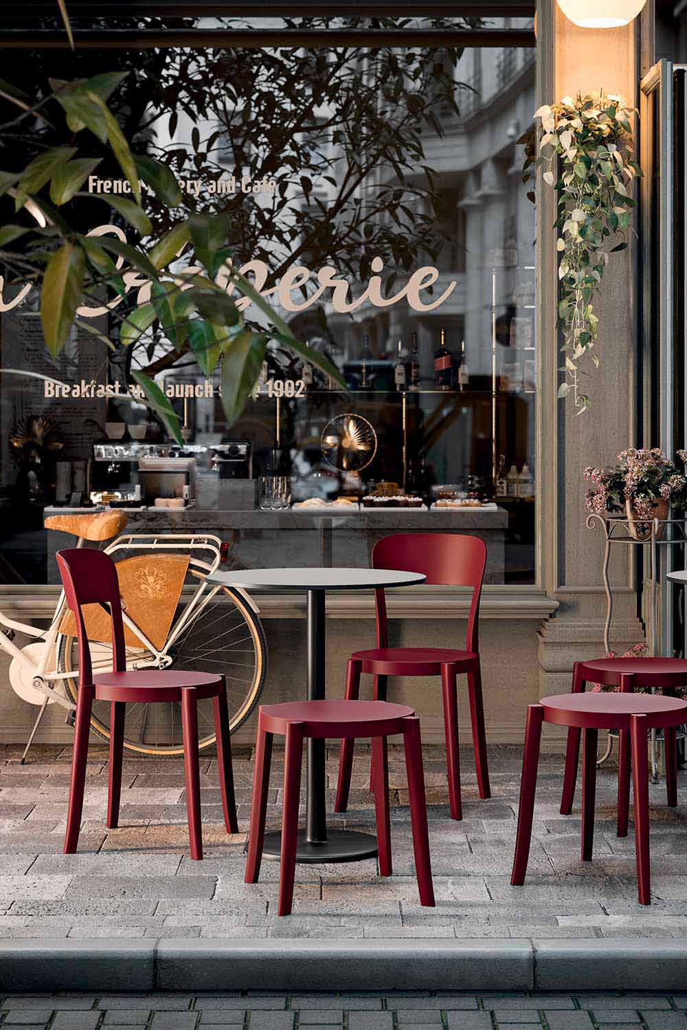 The Anona stool, thanks to the union of primitive forms such as the circle of the seat with the curves that characterize the back and the structure, is characterized by a unique practicality, ideal for the most diverse environments and furnishings, from the most modern to the most classic. Anona is an outdoor stool completely made of polypropylene and stackable up to 8 pieces, for optimal use of space. Available in seven color variations.