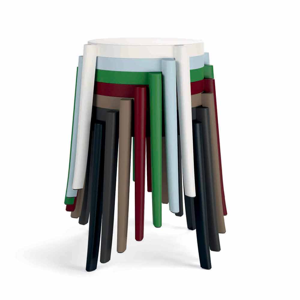 Modern stackable design outdoor polypropylene stool, 4 pieces, made in Italy.