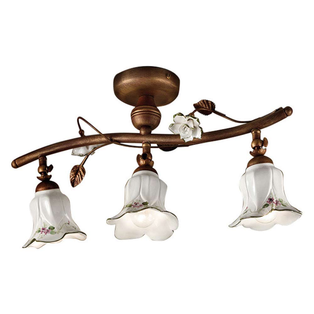 Artisan Ceramic 3-Light Ceiling Lamp with Rose Decoration - Pisa