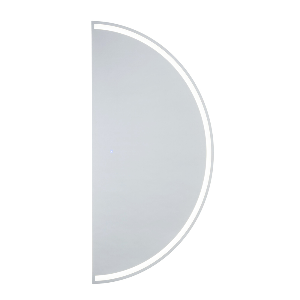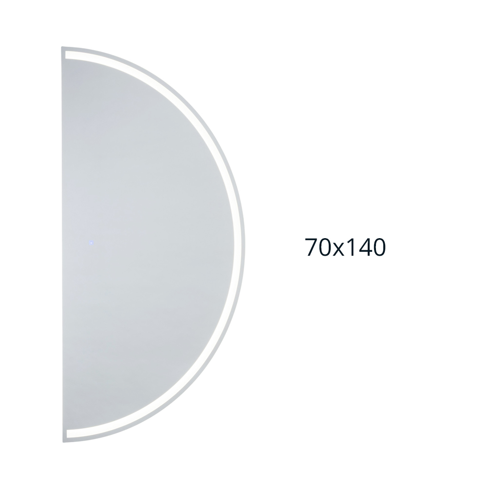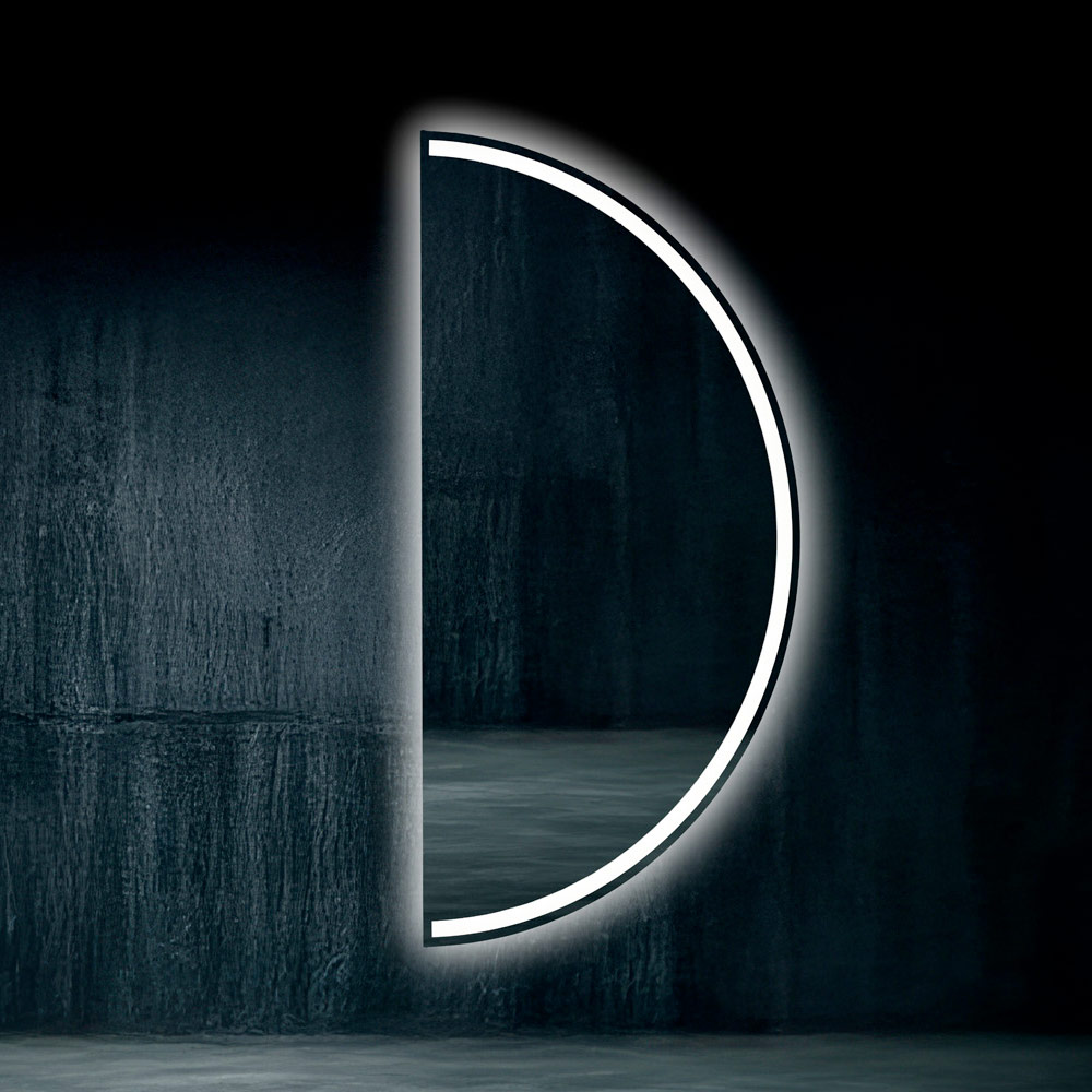 A furnishing accessory that transcends its simple reflective function to transform itself into a true design element . This bathroom mirror, featuring a minimalist semicircular shape and a refined integrated LED light frame, is designed to enrich the room with a dramatic and contemporary touch.