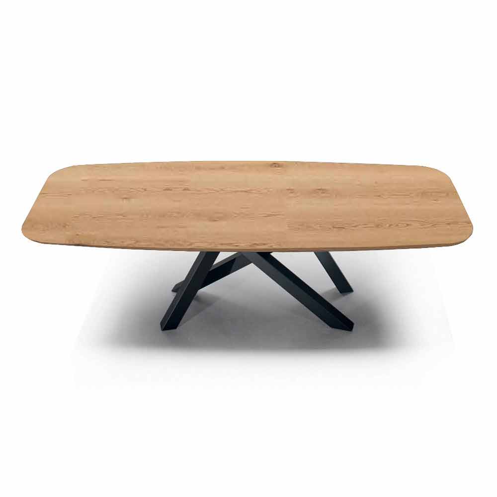 Barrel-shaped dining table in veneered wood and steel Made in Italy, high quality.