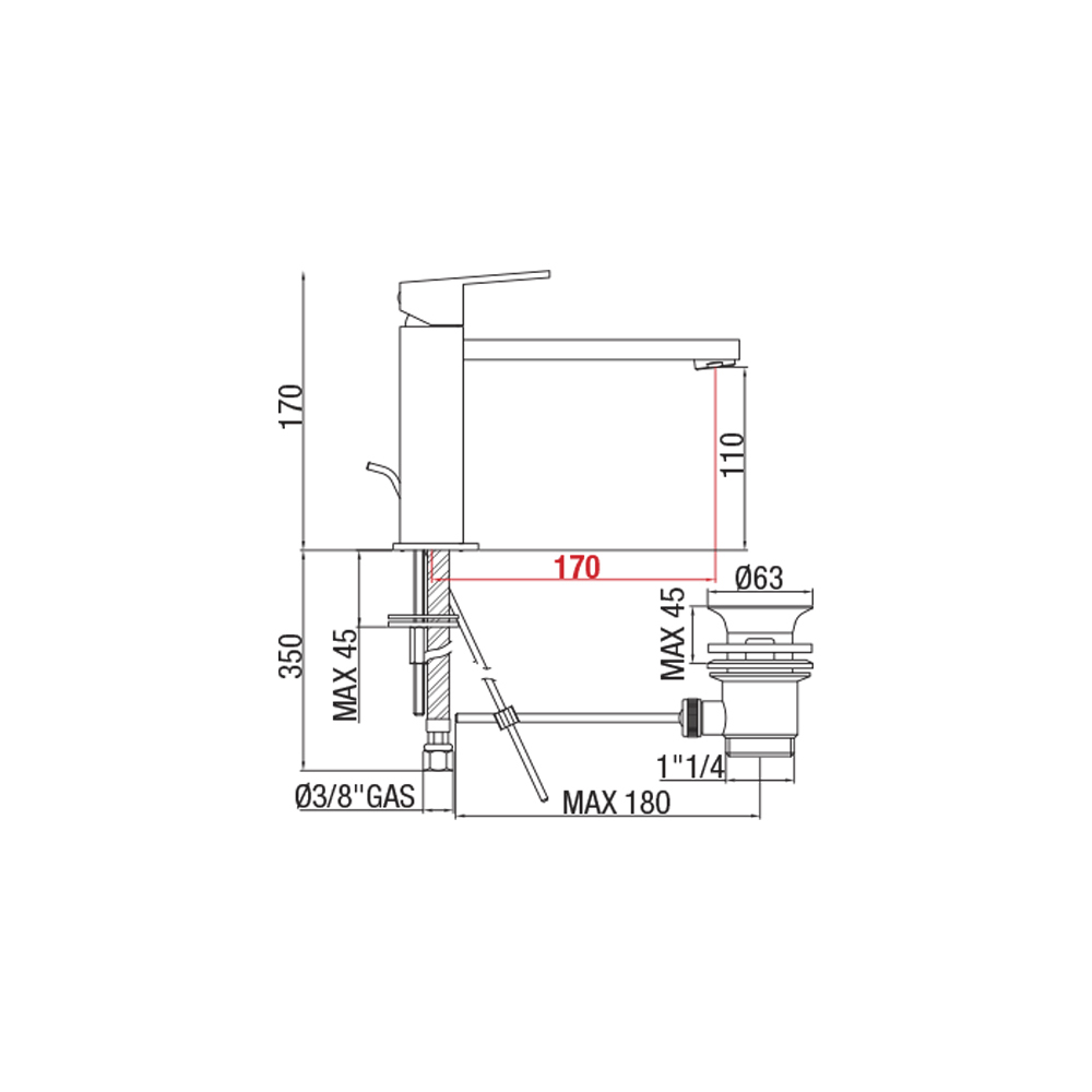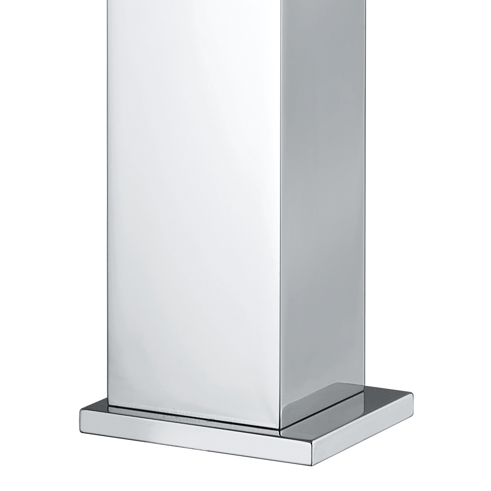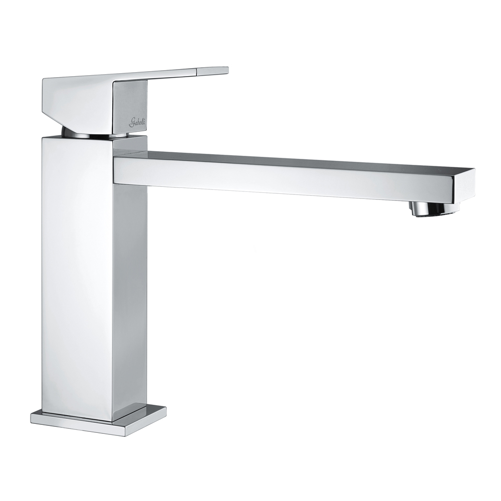 Bathroom sink mixer with pop-up waste in chrome-plated brass with a 170 mm spout and a 25 mm Kerox open cartridge. Square lines and sharp angles lend an extremely modern and refined touch to the product and the entire room, enriching it with style and a completely new flavor. Its simplicity and stunning chrome finish allow this faucet to seamlessly blend into any decor, appearing discreet and elegant.