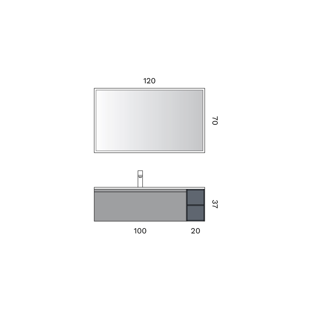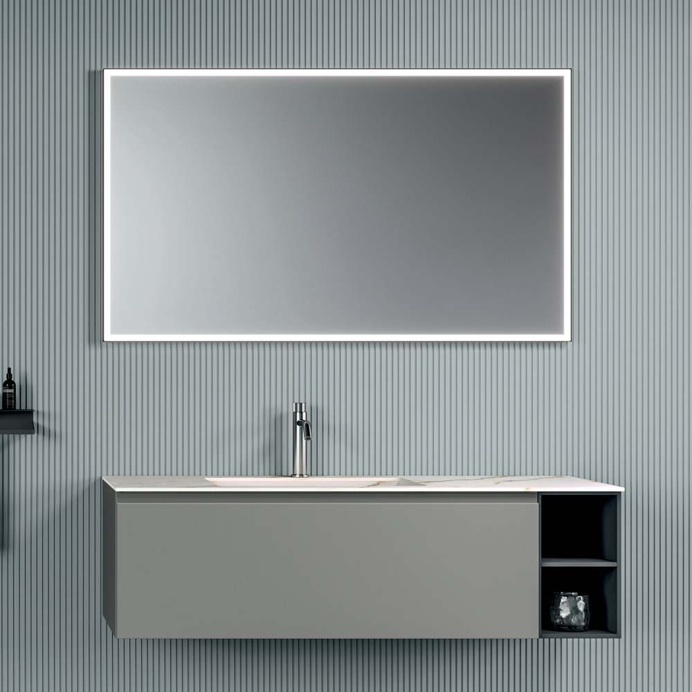 The composition is completed by the backlit LED mirror , designed to offer a uniform and enveloping light, perfect for enhancing the bathroom space and ensuring functional and elegant lighting.
