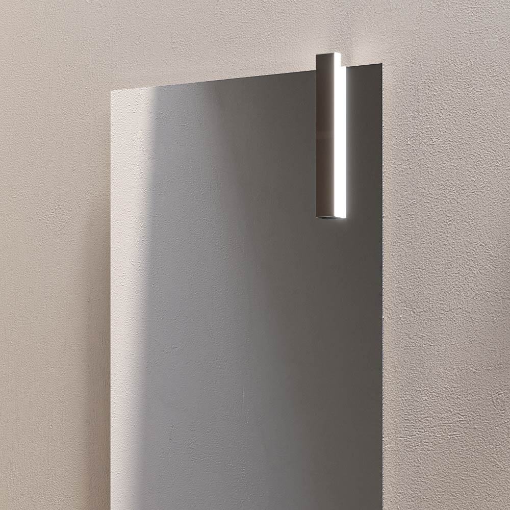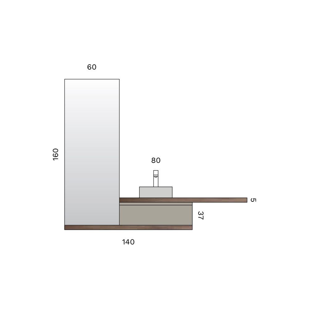 The 160x60 mirror amplifies the brightness of the room, while the LED lamp with chrome finish ensures precise and elegant lighting, ideal for the sink area.