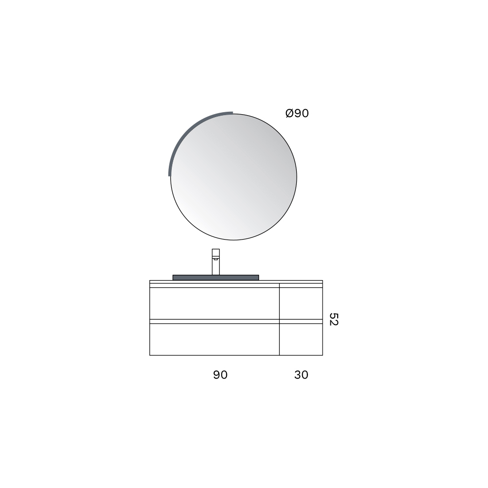 The round mirror , with balanced proportions, completes the ensemble with a touch of visual lightness, amplifying the space and dialoguing harmoniously with the rigorous lines of the furniture.