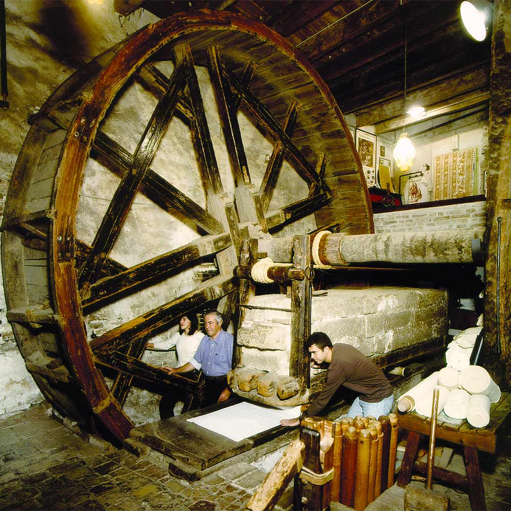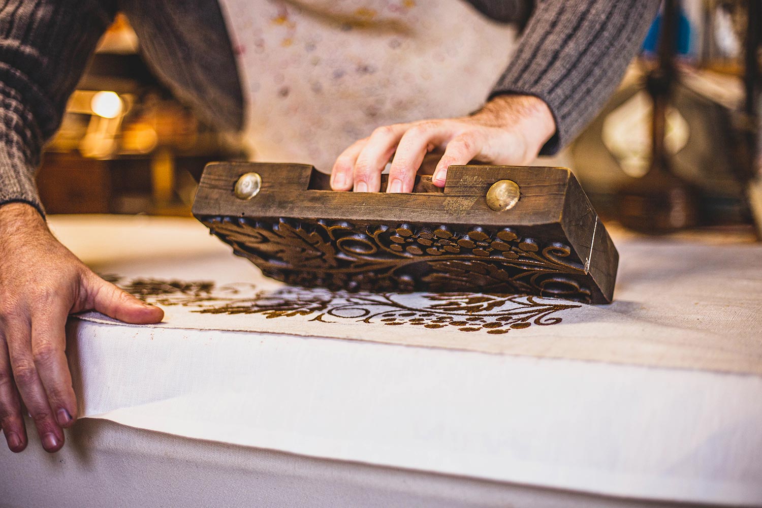 The Antica Stamperia Marchi remained the last workshop to produce these prints with the mangano technique, an ancient press capable of treating the canvas, ironing it, smoothing it up to making it shiny and compact. A unique procedure, Italian craftsmanship, cured in every detail using ultra-centenary tradition tools with techniques handed down from generation to generation by the Marchi family.