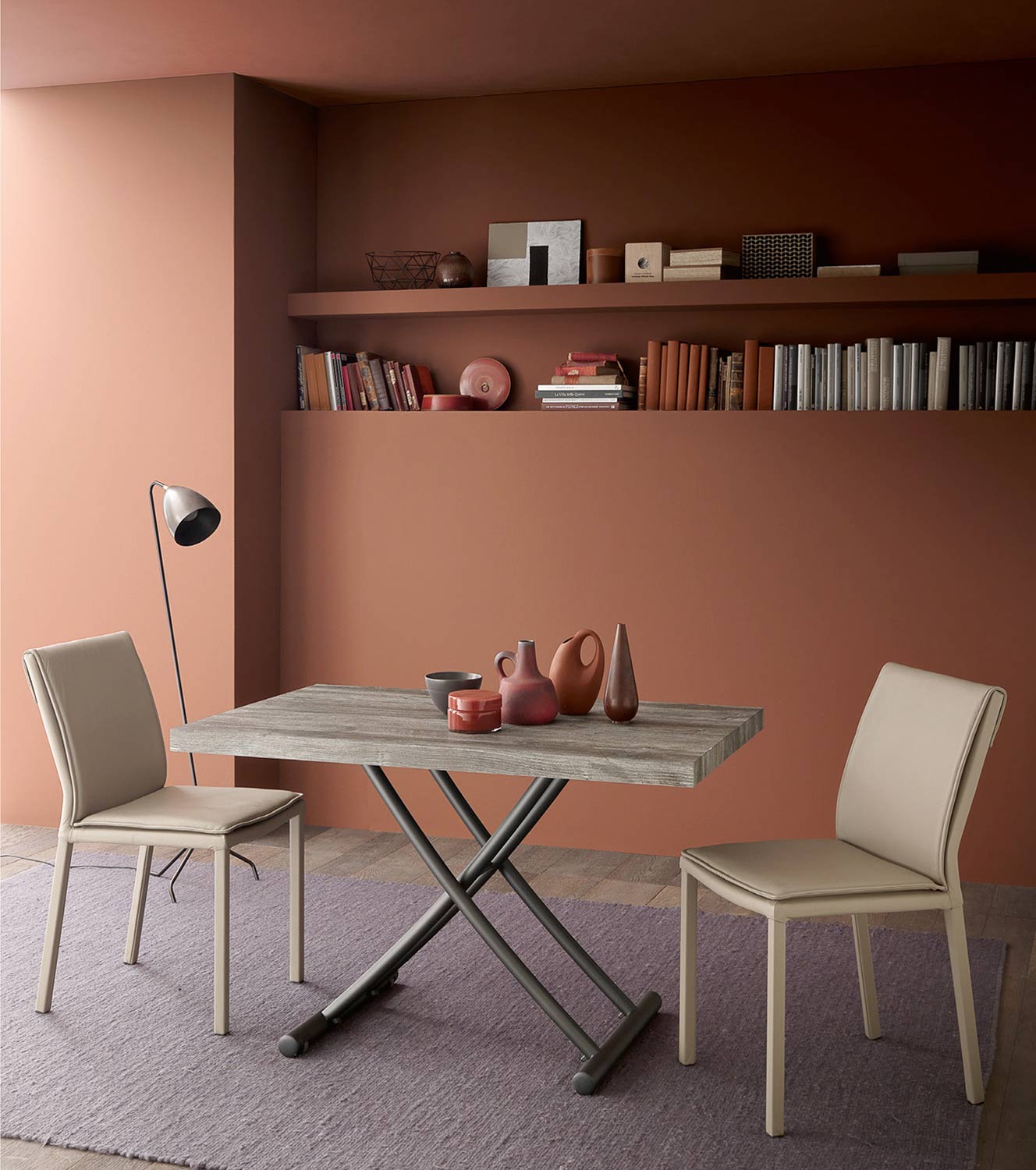 Today even the smallest spaces will not be penalized. The coffee tables that we present are perfect for combining design and functionality. Thanks to the adjustable heights to the millimeter, the doubled planes and the patented mechanisms in a few seconds these tables can be transformed into dining tables. The gas mechanism will allow you to adjust easily the height of the coffee table making it aperfectdining table to organize dinners with friends.