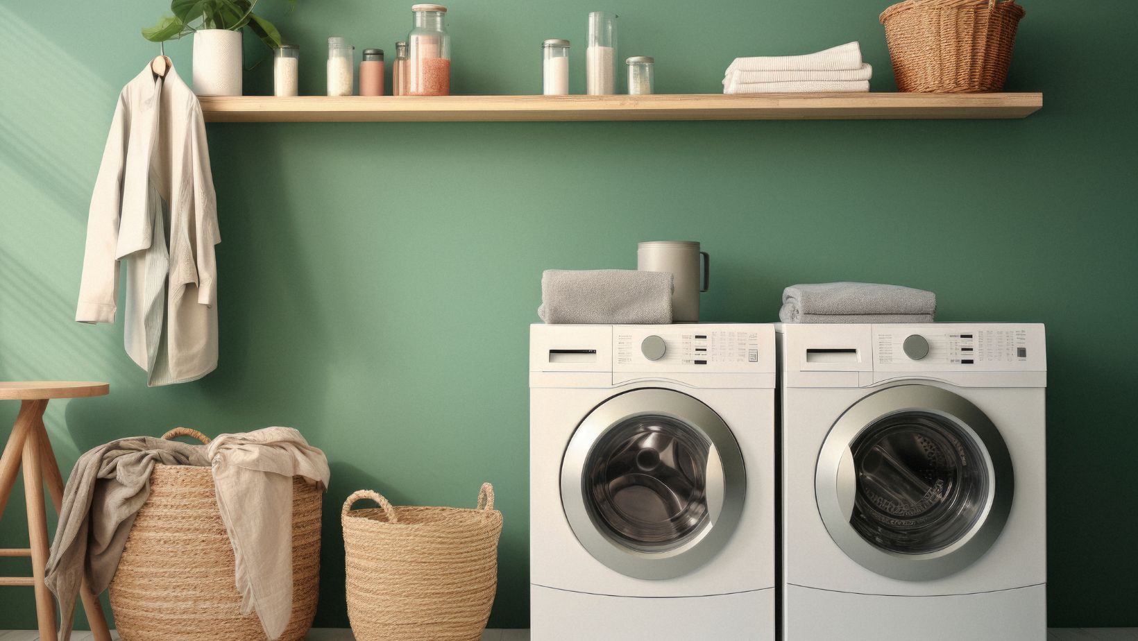 Cabinets and Shelves : Use wall cabinets to store detergents, fabric softeners and other cleaning products. Shelves can provide additional space for less-used items or to keep towels and tea towels close at hand.
