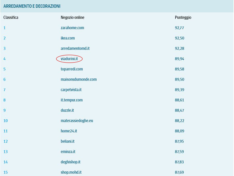 Thanks to the results obtained, Viadurini is proud to be able to celebrate its 4th place in the ranking behind giants like Ikea and Zarahome. The seal "The Stars of E-commerce 2020/2021" becomes a new award that certifies the status of excellence of Viadurini not only on the national scene, but also on the international one.