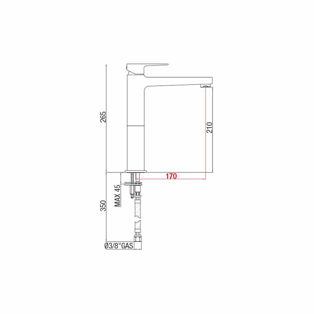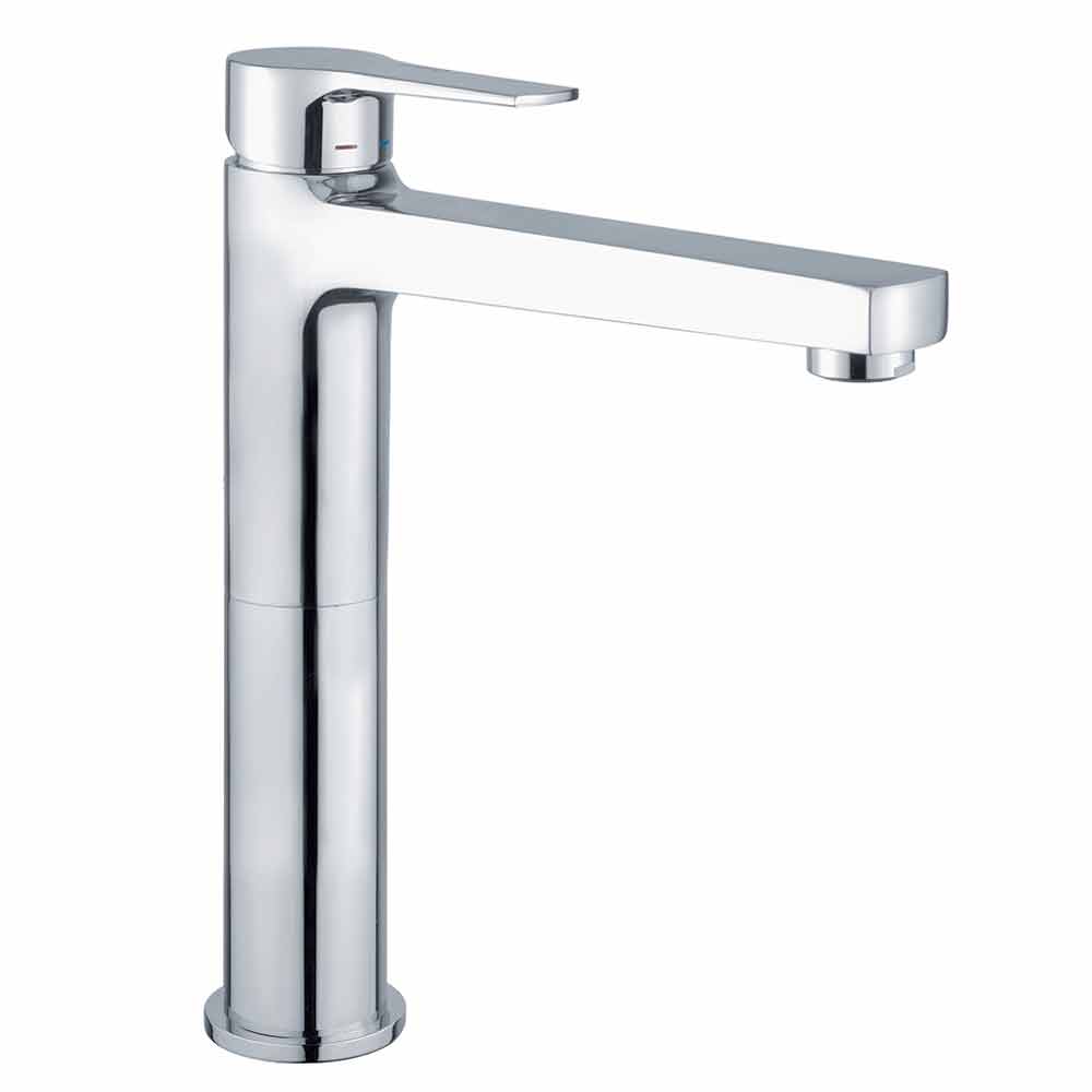 Brass bathroom washbasin mixer without pop -up waste with 170 mm center distance spout.   Ideal for furnishing and finishing in an original but at the same time discreet way any bathroom with a modern style that seeks simple yet different accessories with an innovative taste . Thanks to its unusual height this faucet can be perfect to combine with large washbasins or simply to make your bathroom area unique with a touch of personality .
