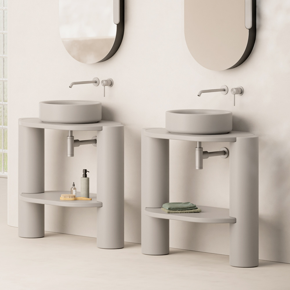 This ceramic structure stands out for its original design with cylindrical columns and integrated shelves , creating a perfect balance between aesthetics and functionality.