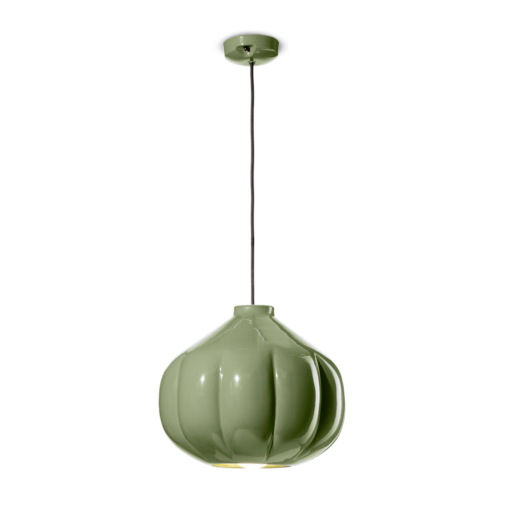 This pendant lamp is a masterpiece of contemporary design that speaks the language of whispered elegance. Its ceramic body evokes a sense of comfort and discreet luxury. The shape, which recalls delicately closed flower petals, was designed not only to capture the eye but also to create diffused and enveloping lighting that enhances every corner of the room.
