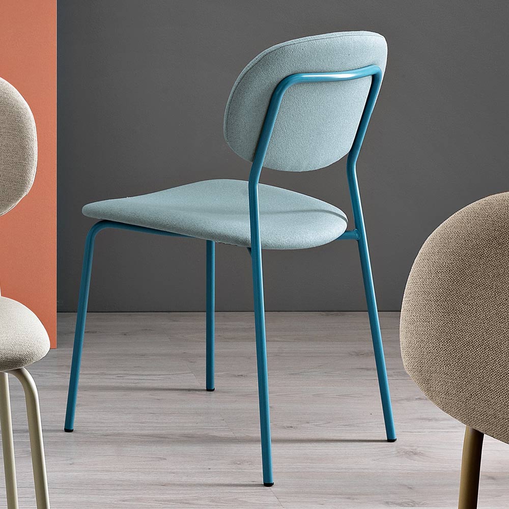 With its ergonomic silhouette, this chair is the embodiment of comfort. The sturdy yet elegant metal legs support the sinuous design of the seat, offering stability without compromising aesthetics. The contrast between the bold colors of the seats and the thin structures is a conscious choice that enhances the versatility of the design, adaptable to a myriad of interior environments.