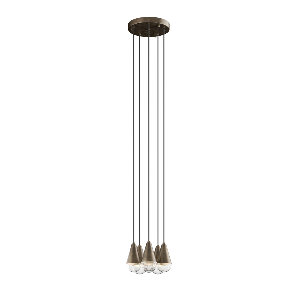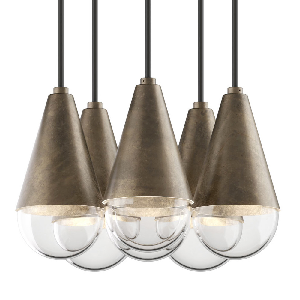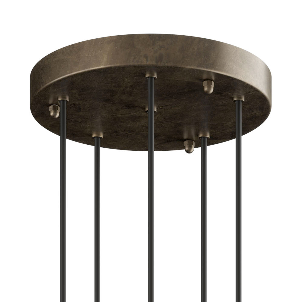 Chandelier with 6 lights made of antique iron and transparent glass with adjustable cables in length and in the ceiling entirely Made in Italy. The clean lines of the collection of indoor lamps highlight the purity of the iron material and make this furnishing element unique and inimitable. The chandelier lends itself to illuminating and giving a touch of uniqueness to any environment and furnishing style so as to adapt to the most disparate design needs.