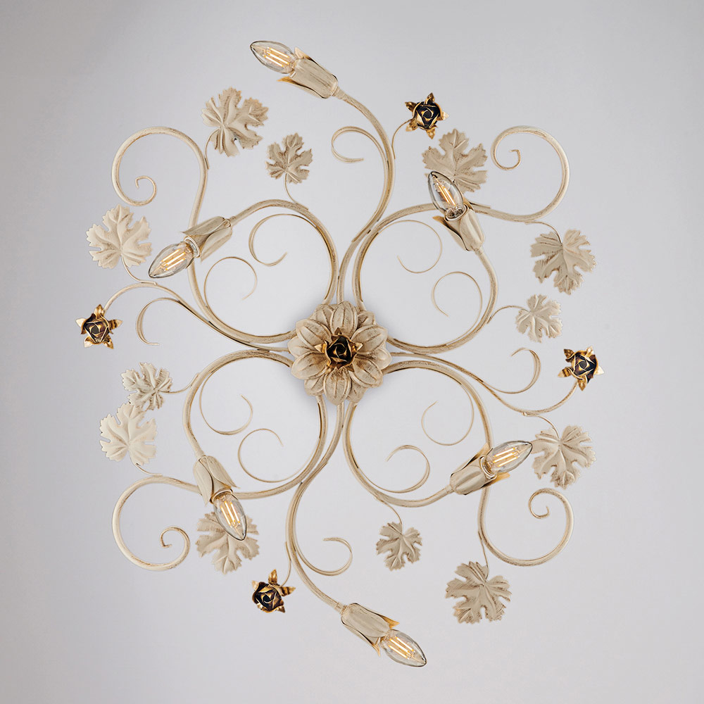 The selected materials, such as iron, create an elegant effect and a pleasant light output. Entirely made in Italy, this ceiling light guarantees reliability, sturdiness, and attention to every detail.