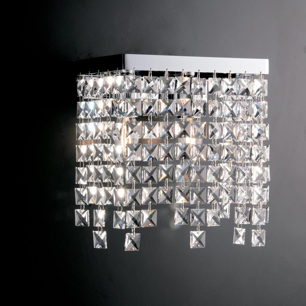 Crafted with a metal structure and enriched with transparent decorative elements, it diffuses light, creating refined plays of reflections that create a welcoming and refined atmosphere.