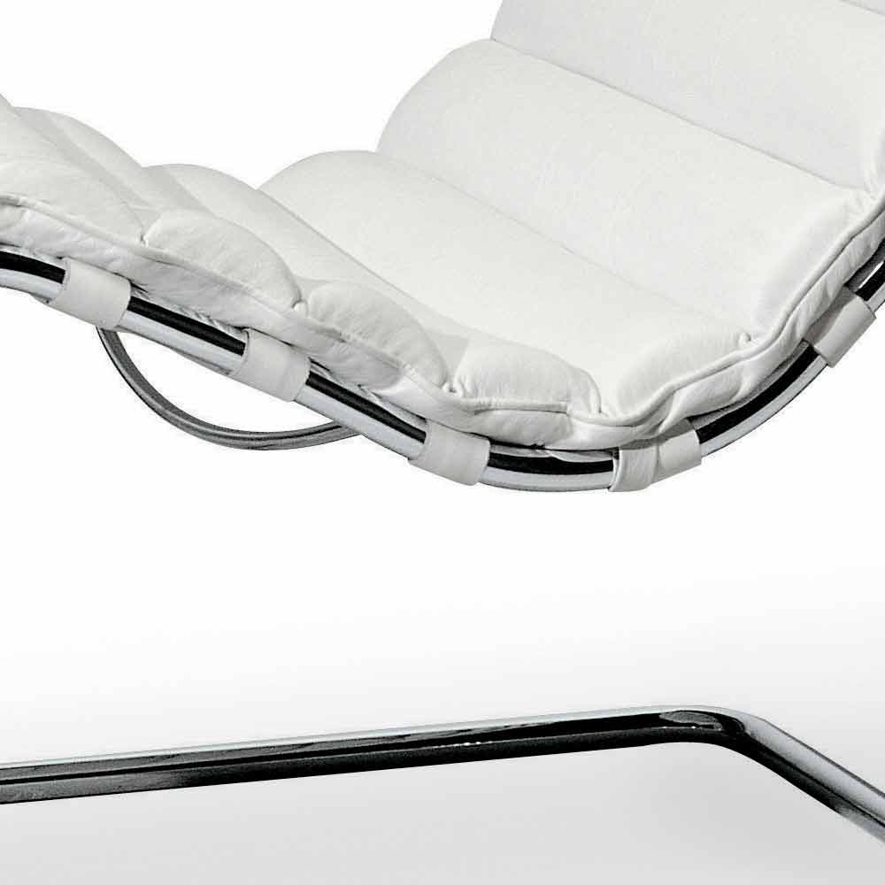 Chaise longue in chromed steel with leather upholstery Made in Italy.