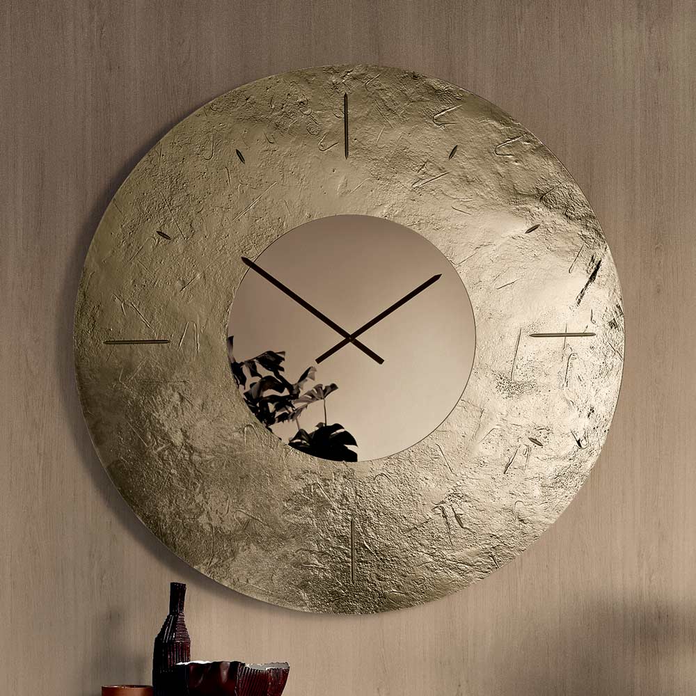 Elegant designer wall clock Made in Italy , ideal for enhancing spaces such as the living room , entryway , or dining area . Its contemporary design combines aesthetics and functionality, transforming the timepiece into a true decorative element capable of enriching the wall with style.