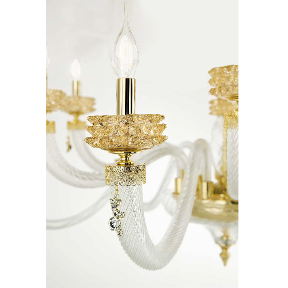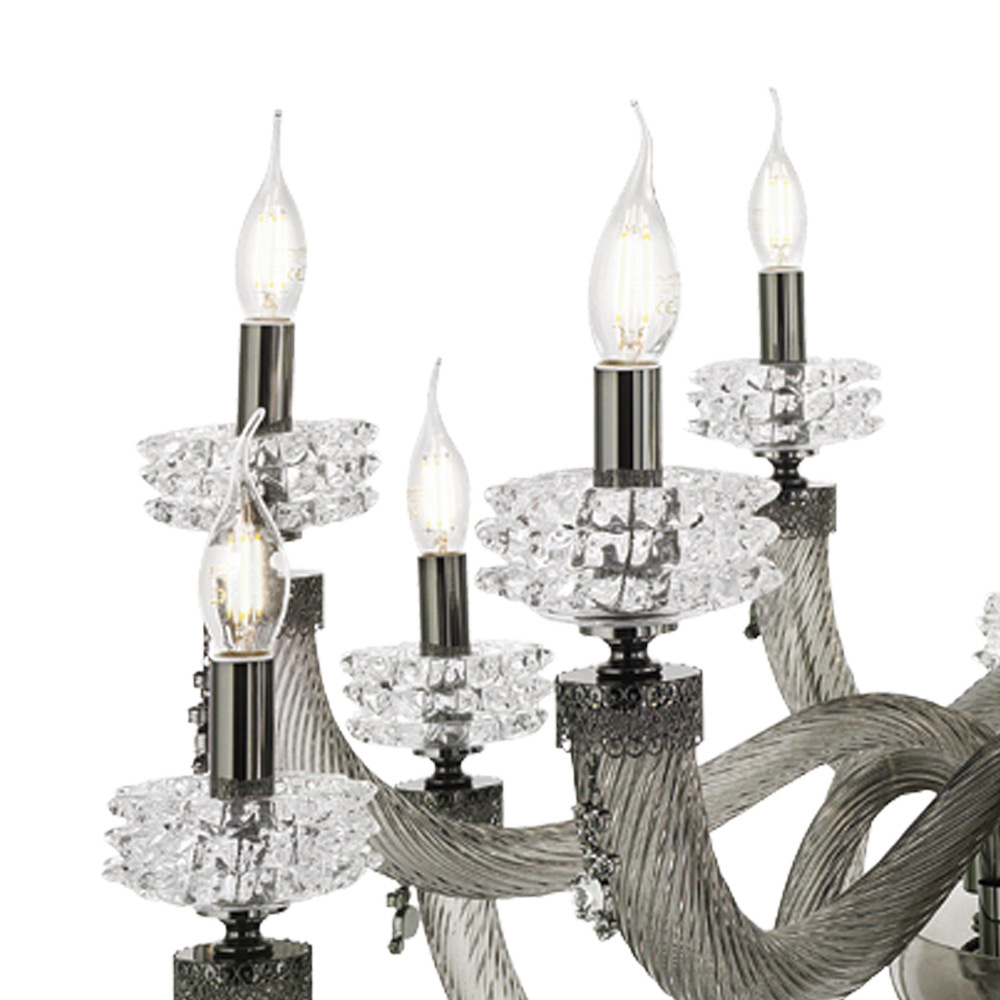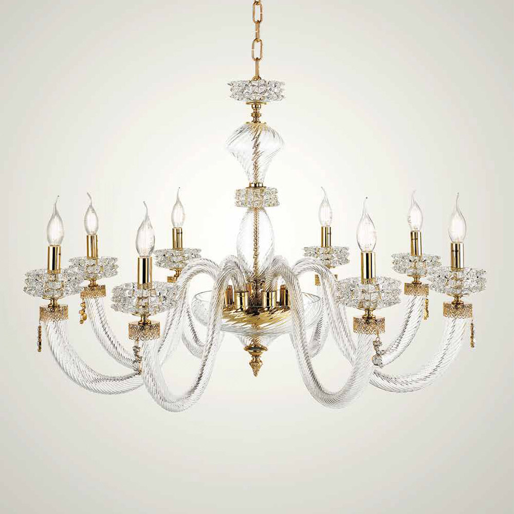 8 lights chandelier in handcrafted glass and metal, Italian luxury design.