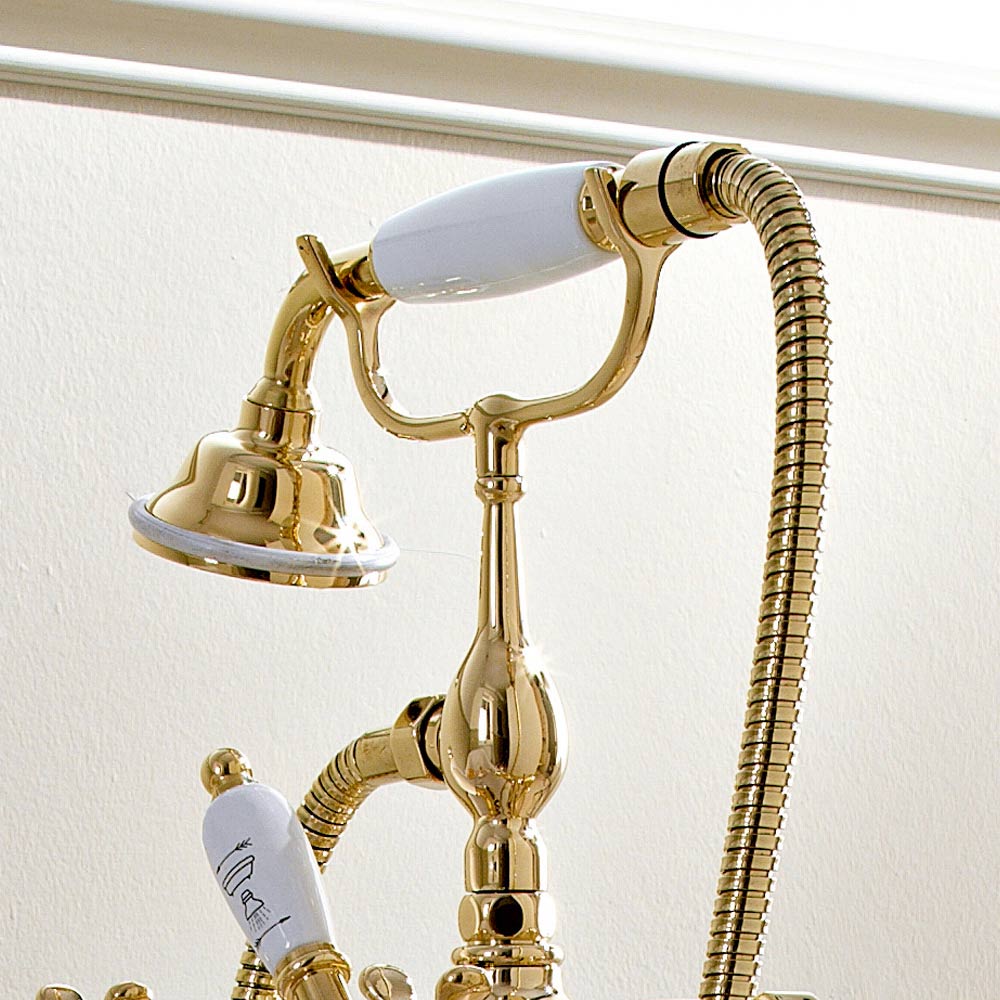 Crafted brass classic floor-standing bathtub fitting with hand shower, high quality made in Italy.