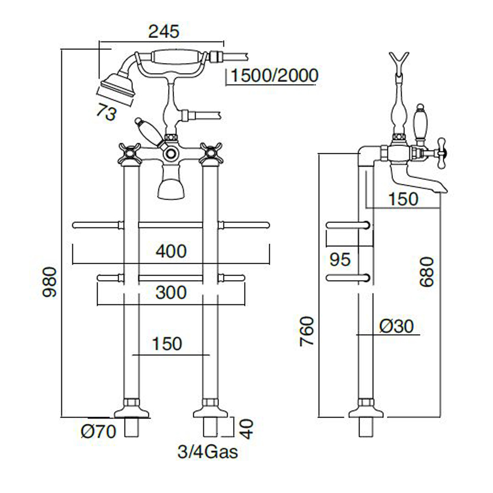 floor-mounted bathtub set with towel rail, hand shower and flexible hose è entirely