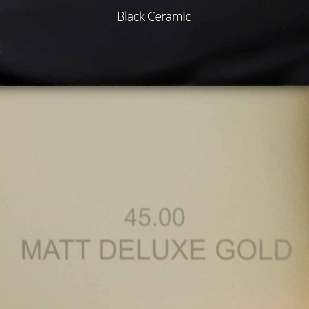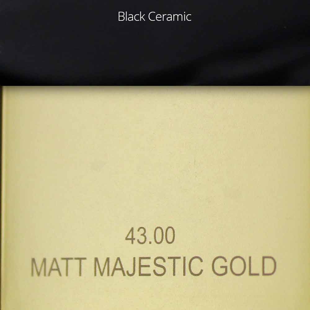 Matt Majestic Gold: matt 13 gold finish with black ceramic inserts on the handles;