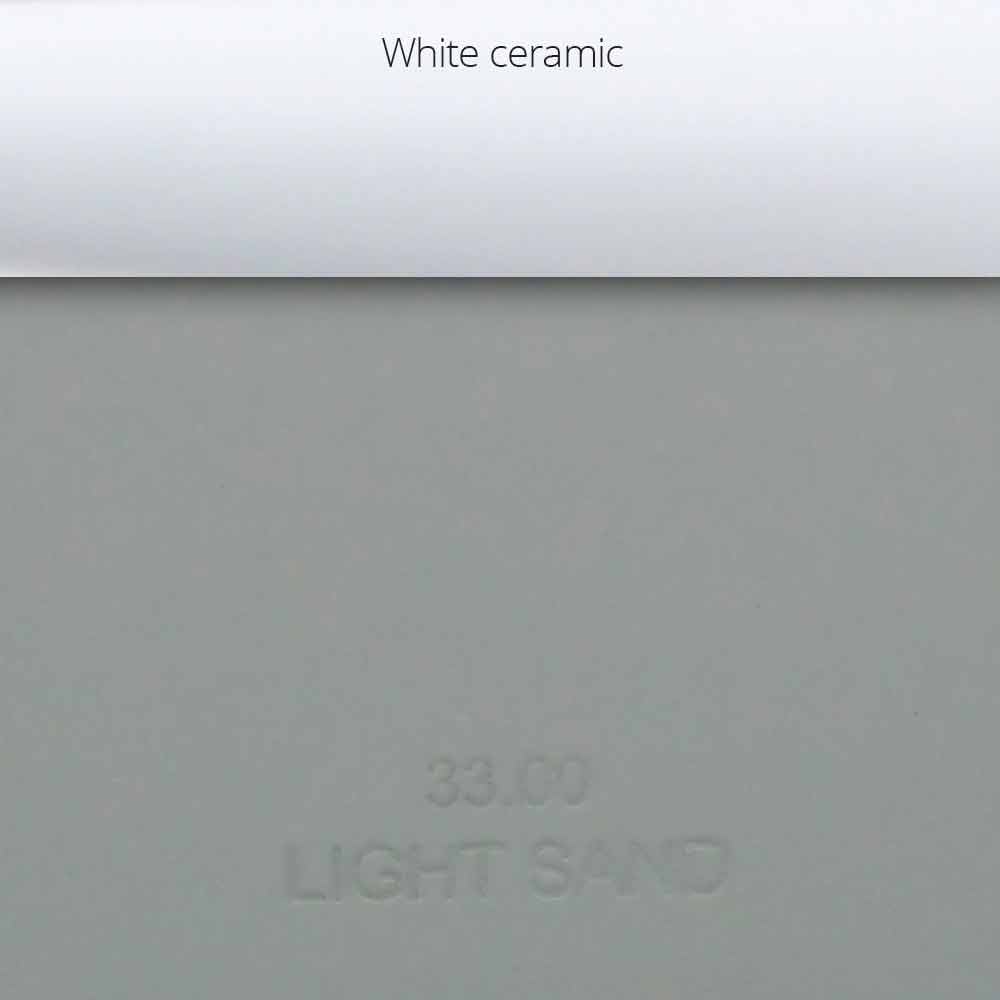 Light Sand: matt warm light gray finish with white ceramic inserts on the handles;