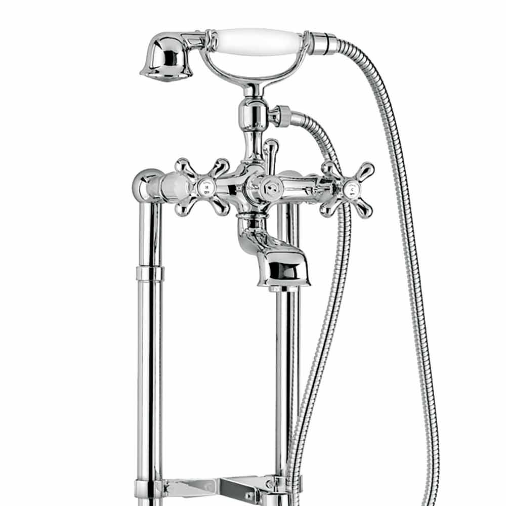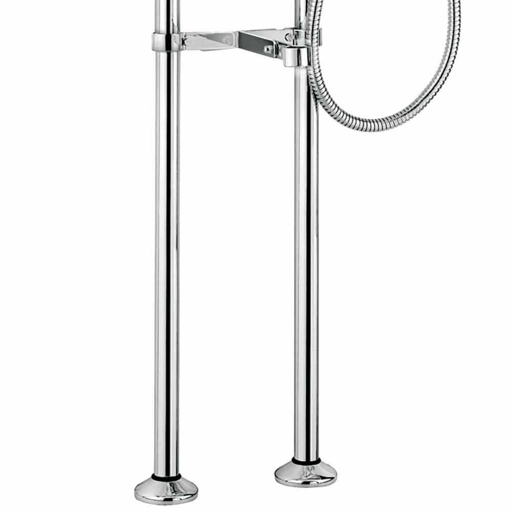 Exposed bath mixer on floor columns with diverter and duplex hand shower Made in Italy.