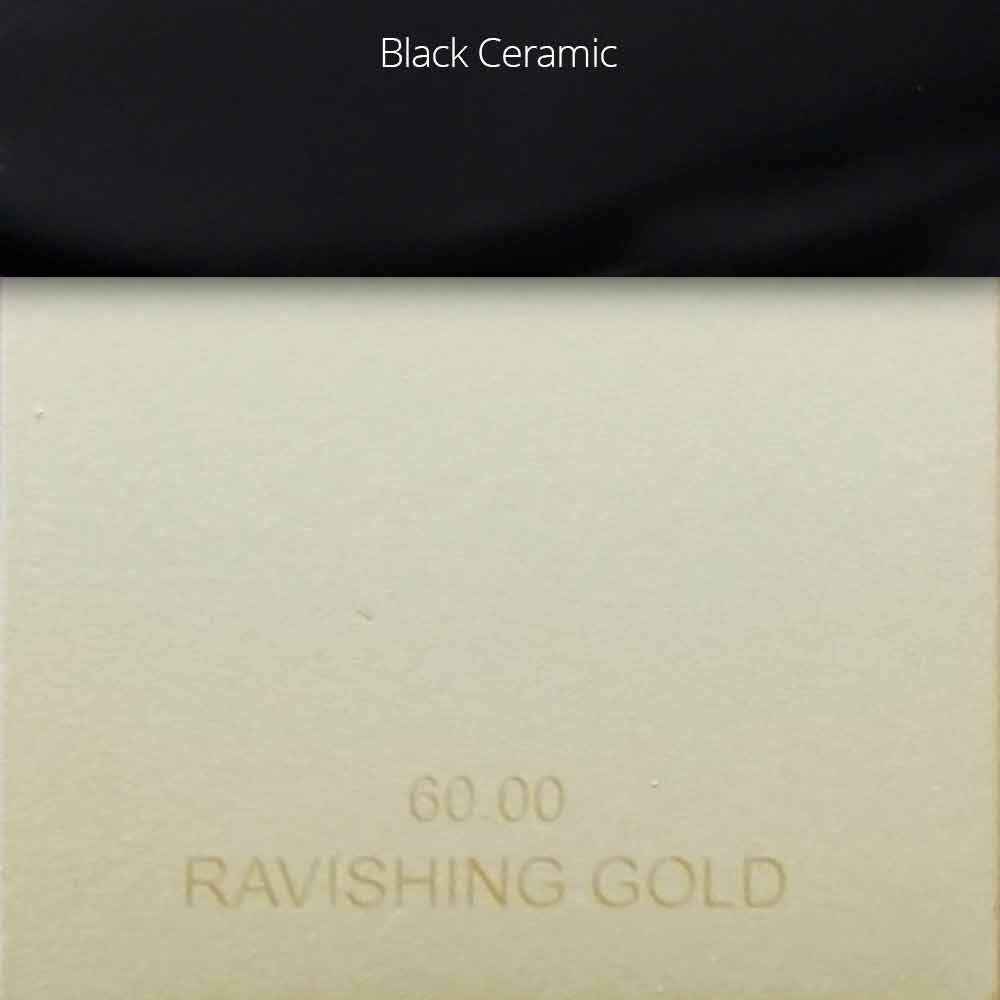 Ravishing Gold: matt gold metallic finish with black ceramic inserts on the handles;