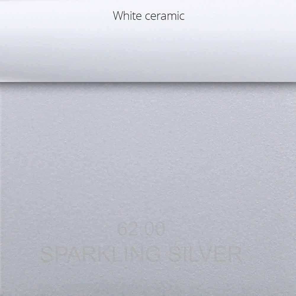 Sparkling Silver: matt silver metallic finish with white ceramic inserts on the handles;