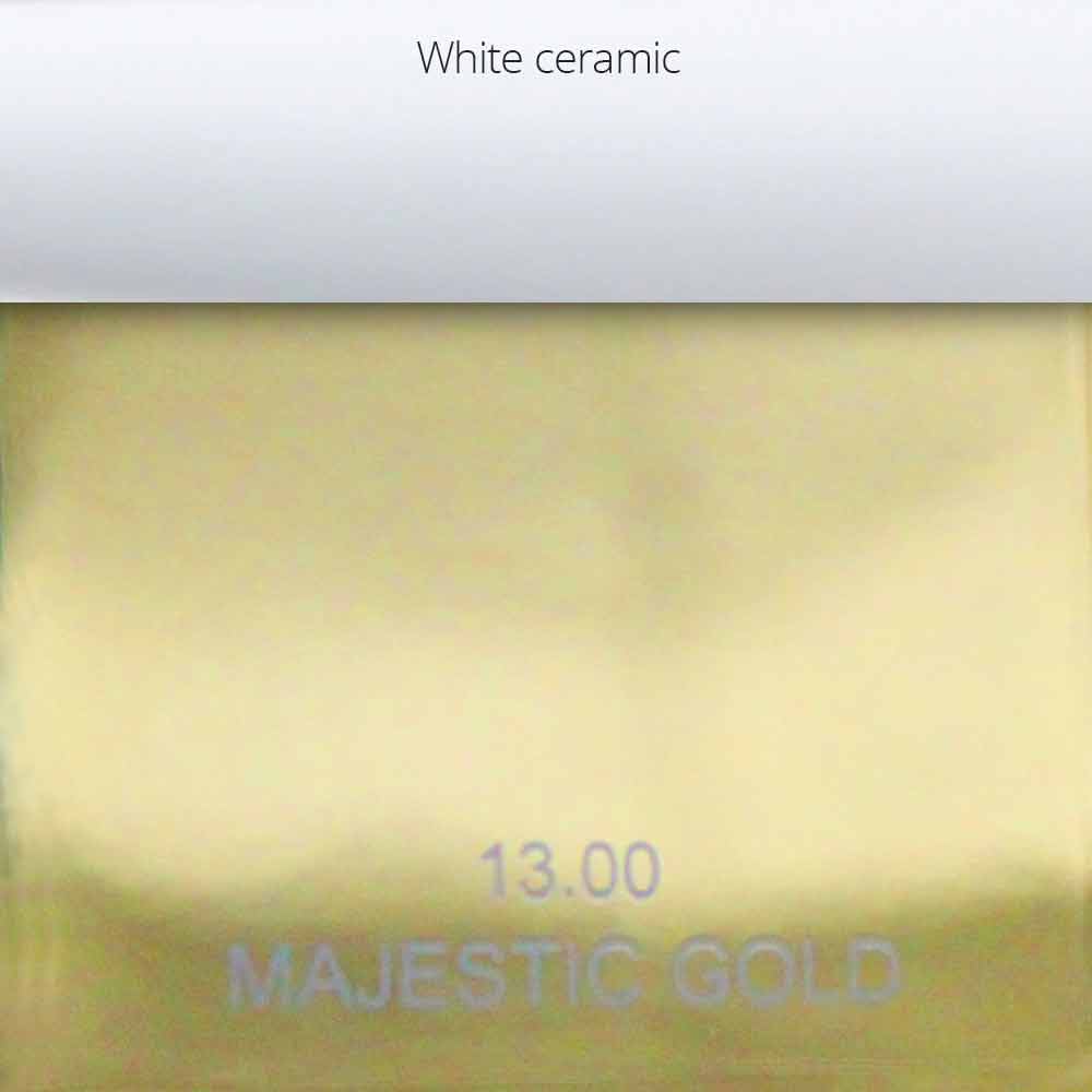 Majestic Gold: shiny 13 gold finish with white ceramic inserts on the handles;