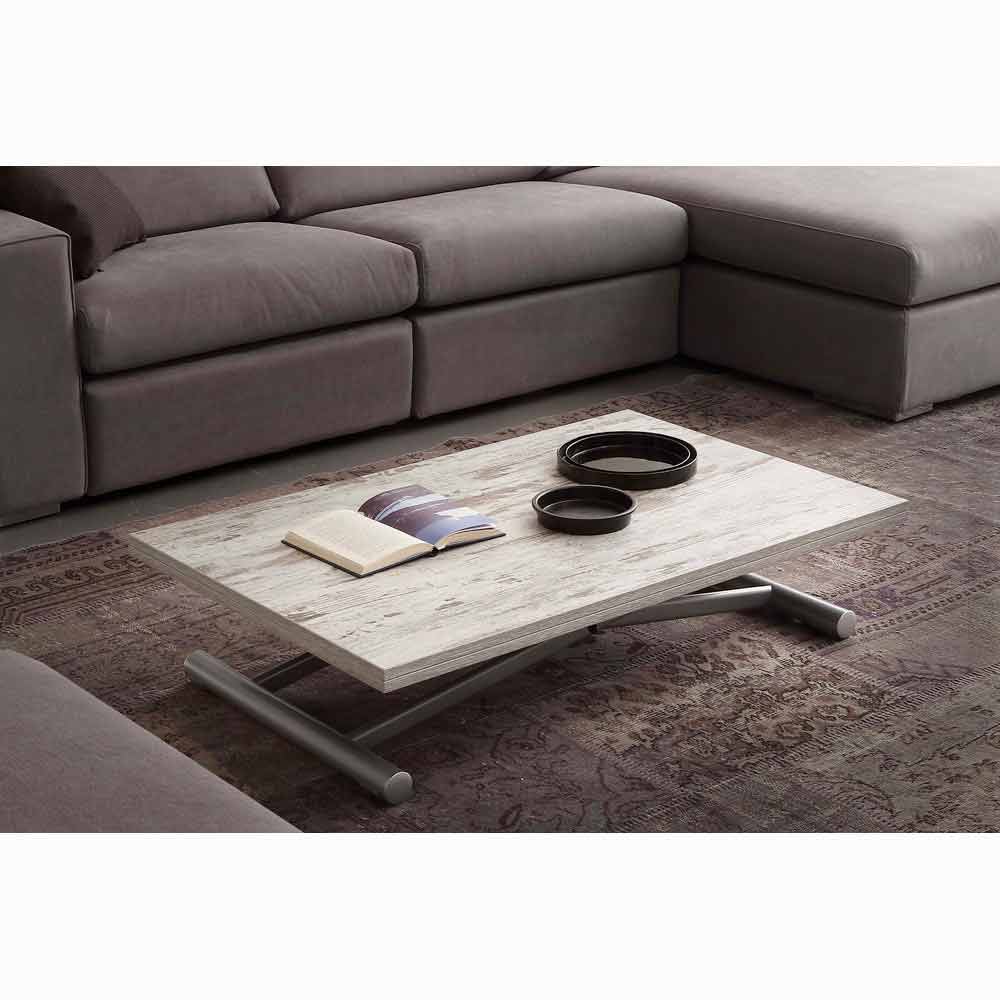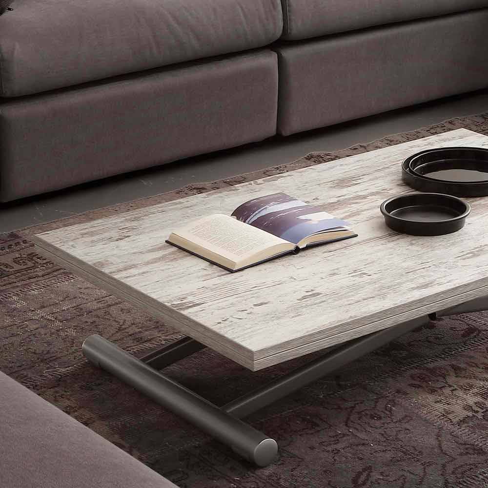 Extendable table with adjustable height. Can be used as a table or as a side table. Metal structure , in the chromed or aluminum version and melamine top , also available in different variants: glossy white, concrete finish or in the vintage finish.
