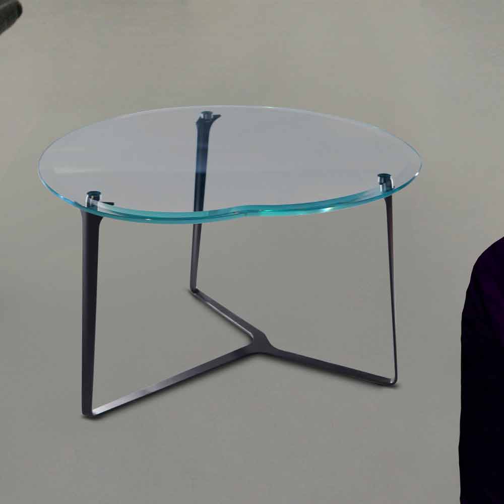 Its aesthetics is underlined by the choice of using creative shapes for both the top and the base, thus giving the product an original and completely revolutionary personality. The thin and delicate lines of the steel structure follow irregular lines, as unpredictable as streams of water, representing a solid support for the table. The top is delicately placed on them, very pure and ultra-clear, whose brilliance recalls that of a real precious diamond on which the light glides, creating wonderful plays of contrasts. From the encounter between the timeless elegance of glass and the intrinsic modernity of steel, a furnishing solution with a refined soul is born, ideal for completing and embellishing your spaces with a touch of creative style .