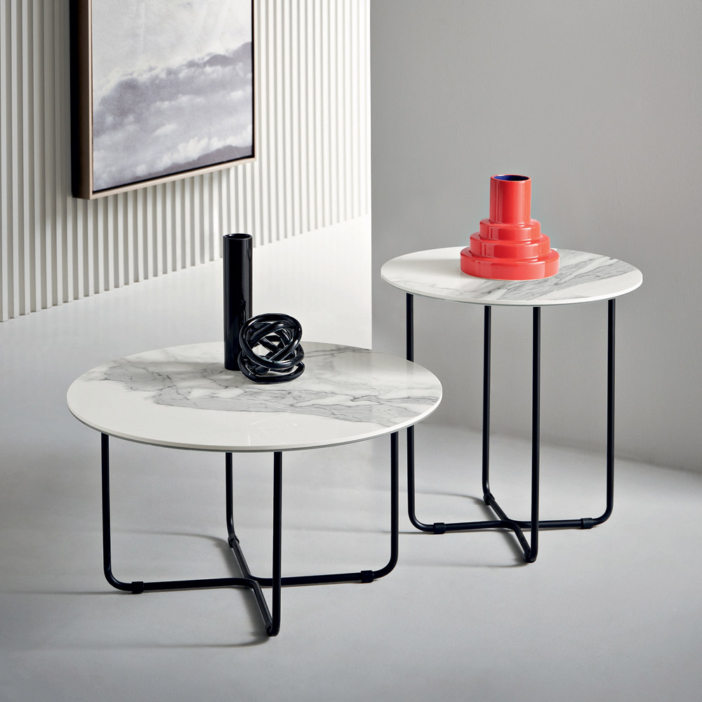 The frame is made of painted metal , solid yet visually light, capable of integrating harmoniously into modern spaces. The clean, well-proportioned shapes give the table an elegant and timeless aesthetic, perfect for a variety of furnishing contexts.