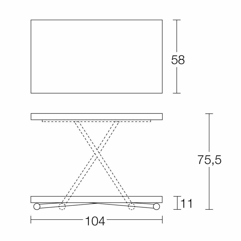 This convertible coffee table is a practical space-saving coffee table . Thanks to its graceful and elegant dimensions, once closed it can be stored under the sofa or under the bed. Perfect as a workstation or as a dining table. It can be transformed from a coffee table to a dining room or kitchen table via a gas mechanism that can be adjusted in height to the millimetre from 11 cm to 75.5 cm.