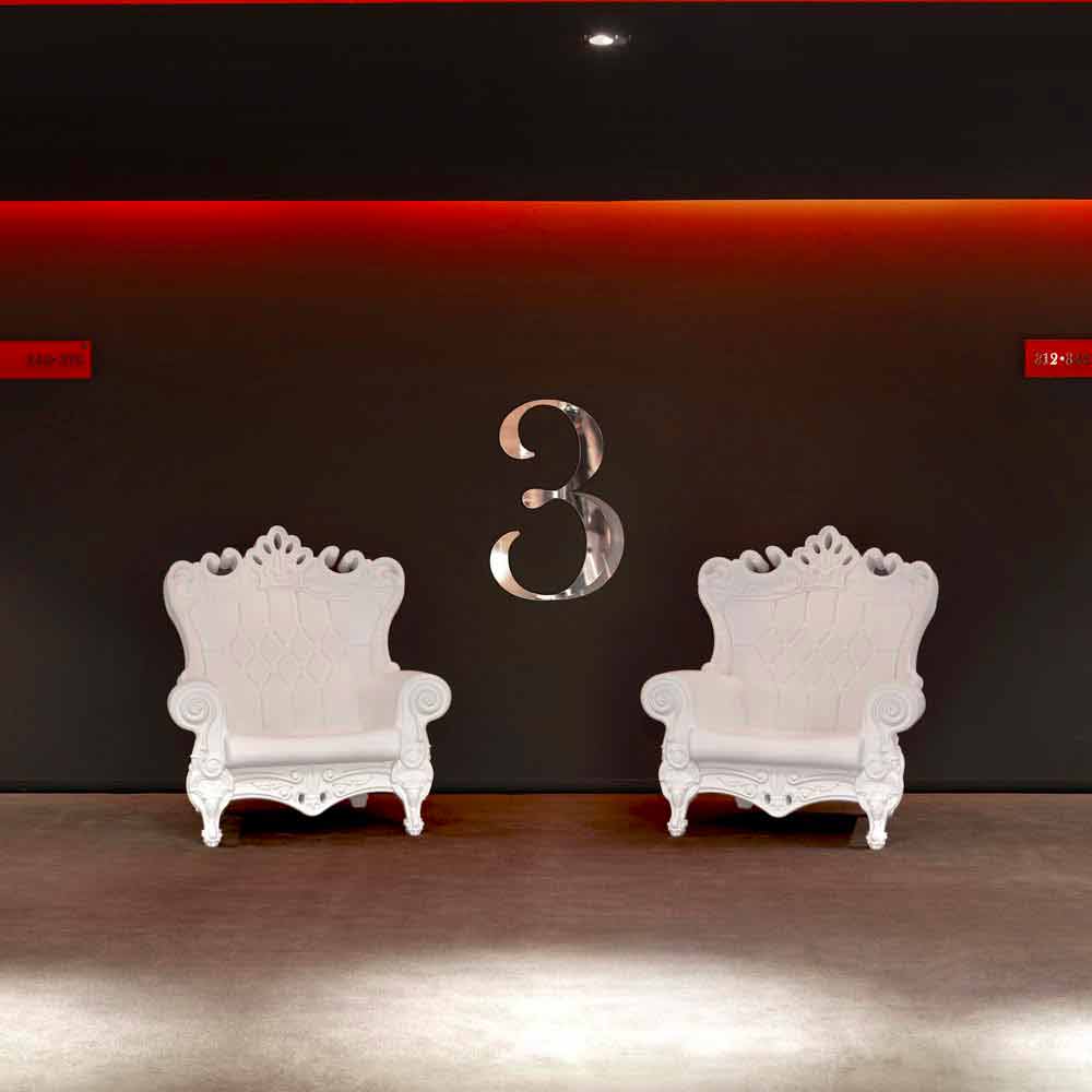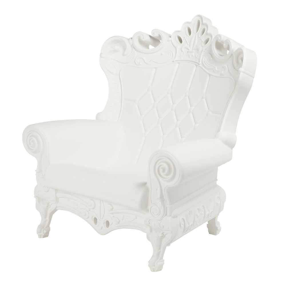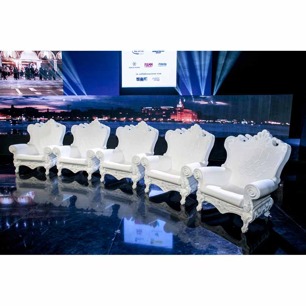 Elegant armchair in polyethylene Slide Queen Of Lov, made in Italy Queen Of Love is an armchair that lends itself to both indoor and outdoor environments. A complement with a unique made in Italy design able to immediately attract attention thanks to its majesty and to crown anyone who sits on it. Perfect as a chic touch for evenings and events or as a setting for special occasions.