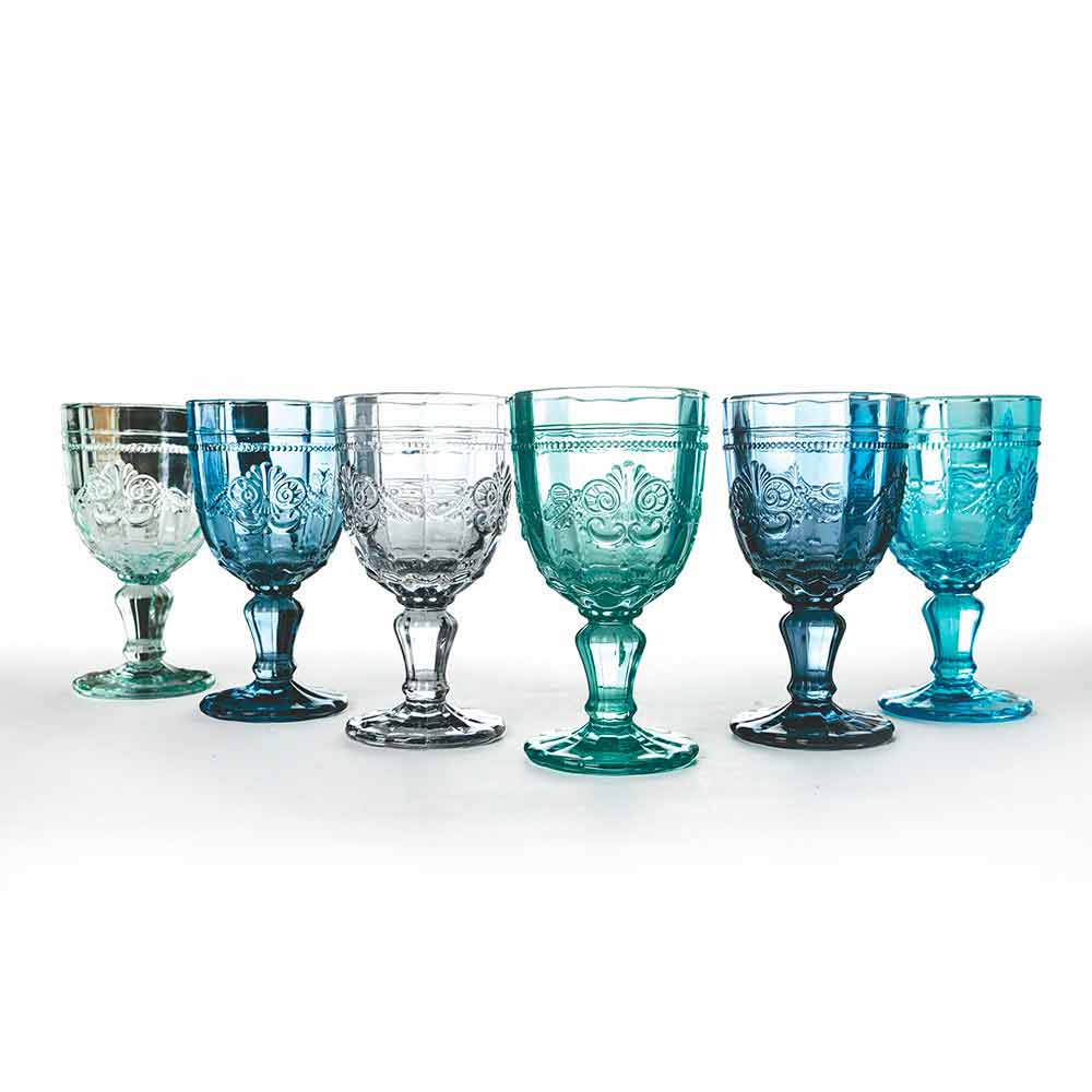 An elegant, sumptuous line, embellished with arabesque decorations on the surface. The colors with intense nuances outline a sparkling personality that allow the content to be glimpsed thanks to the transparency of the material. The result? A refined table, with an exotic, luxurious and colorful style. Each guest is given a different color to symbolize that each participates in a different way in conviviality.
