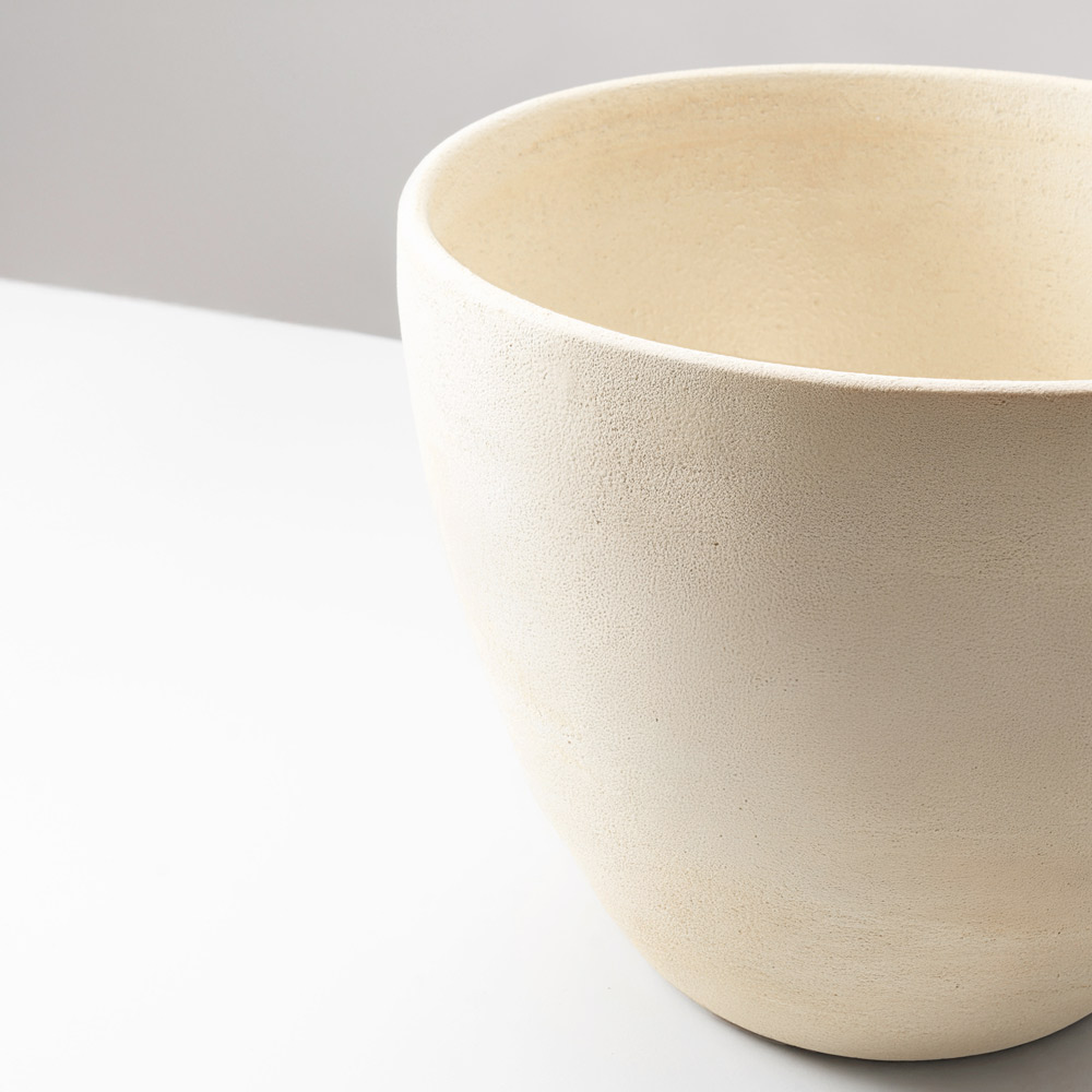This countertop washbasin is crafted from hand-turned fireclay and stands out for its simple, slender shape , designed to enhance the sink countertop with elegance and visual lightness. A design object that combines formal simplicity with a strong material presence.