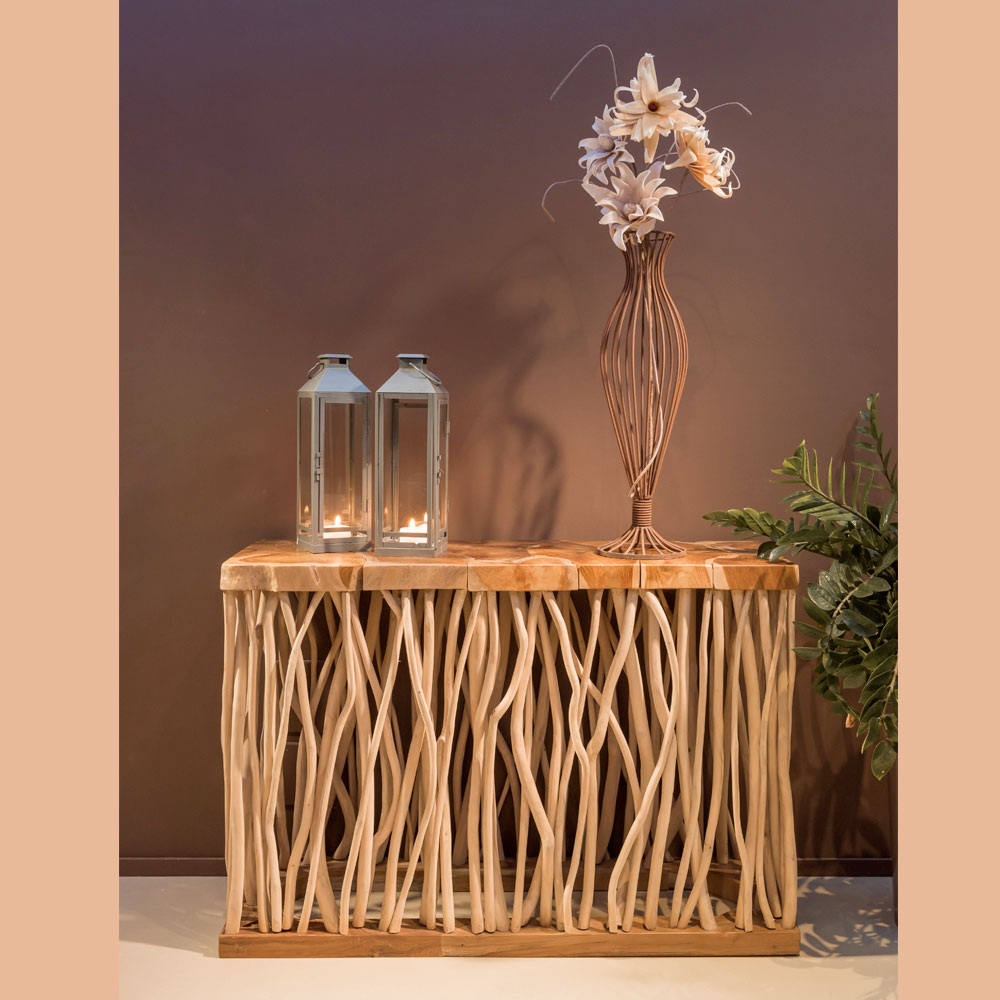 The craftsmanship and use of wood in its most authentic form make each console table a unique piece, in which the grain and natural irregularities become elements of great aesthetic value.